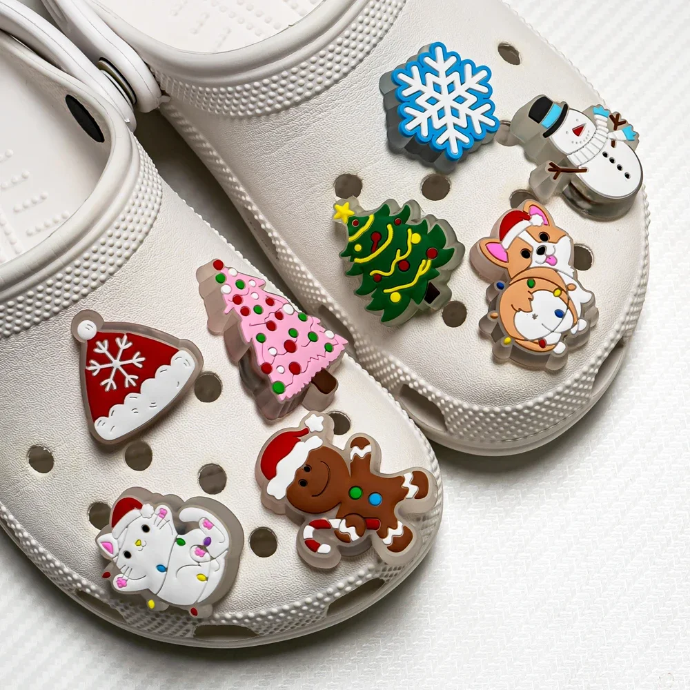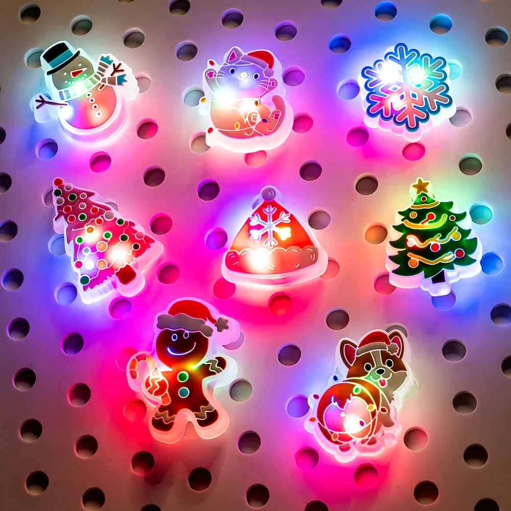 1/2pcs Christmas LED Shoe Charms Santa Claus Snow Snowman Glowing Pins Lighted S