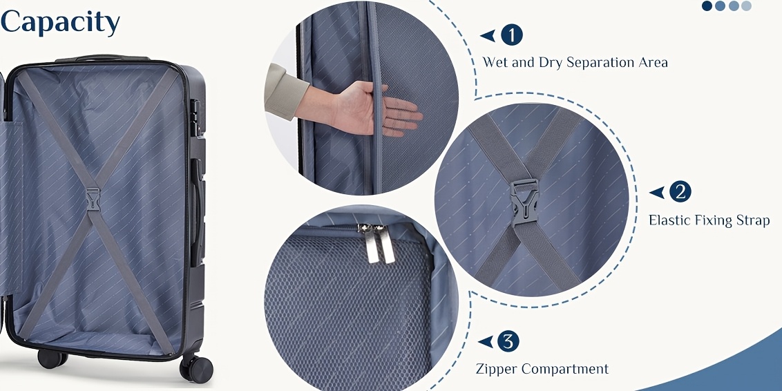 1/3 Piece Hardside Luggage With 20/24/28-Inch Sizes, Durable Hard Shell, 4 Doubl