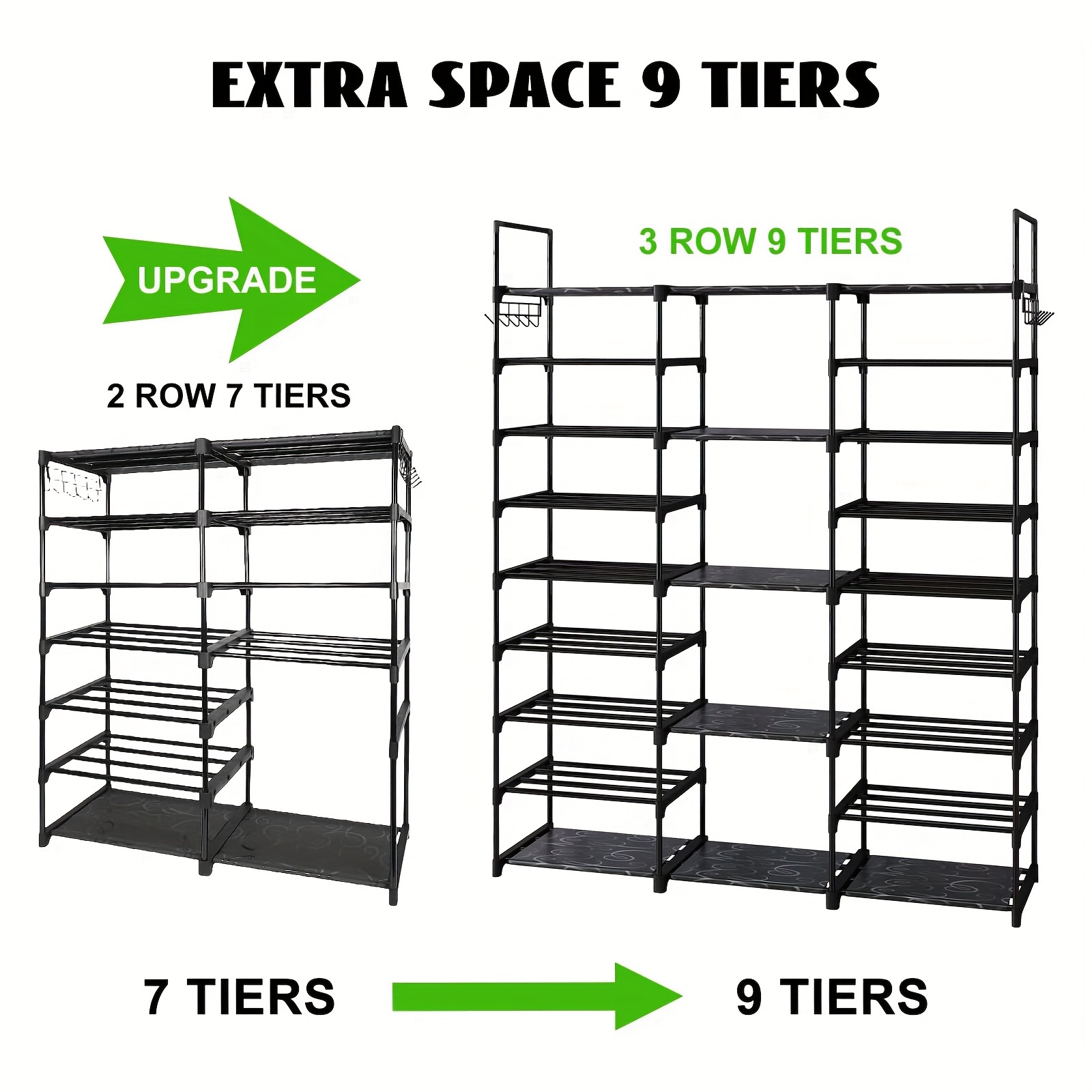 SPECIFICATIONSBrand: SuperleleFeature: Fragrance FreeItem ID: HH137517Material: Iron1 pc 9-tier shoe rack organizer (51" L x 10.6" W x 61.2" H), black, 50-55 pairs,SKU: 16110462$53.22PriceQuantity*1pcAdd to CartBuy Now