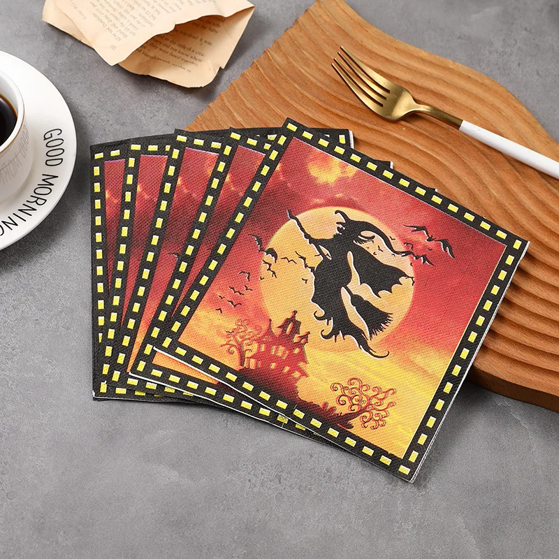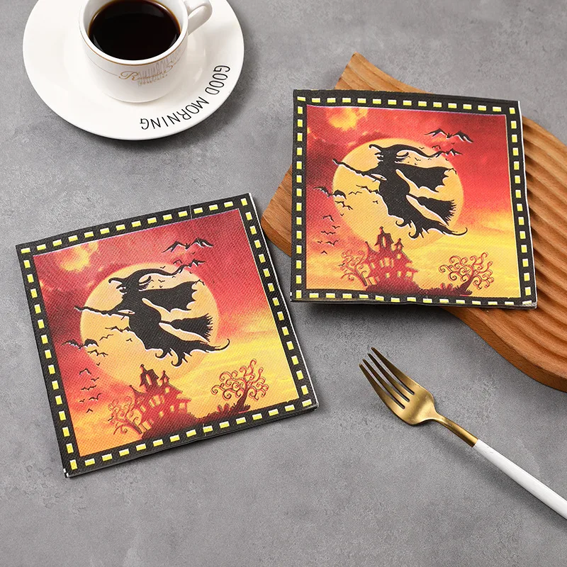 10/20pcs 33cm 2Layer New Halloween Witch Colored Napkins Party Wine Glass Floral