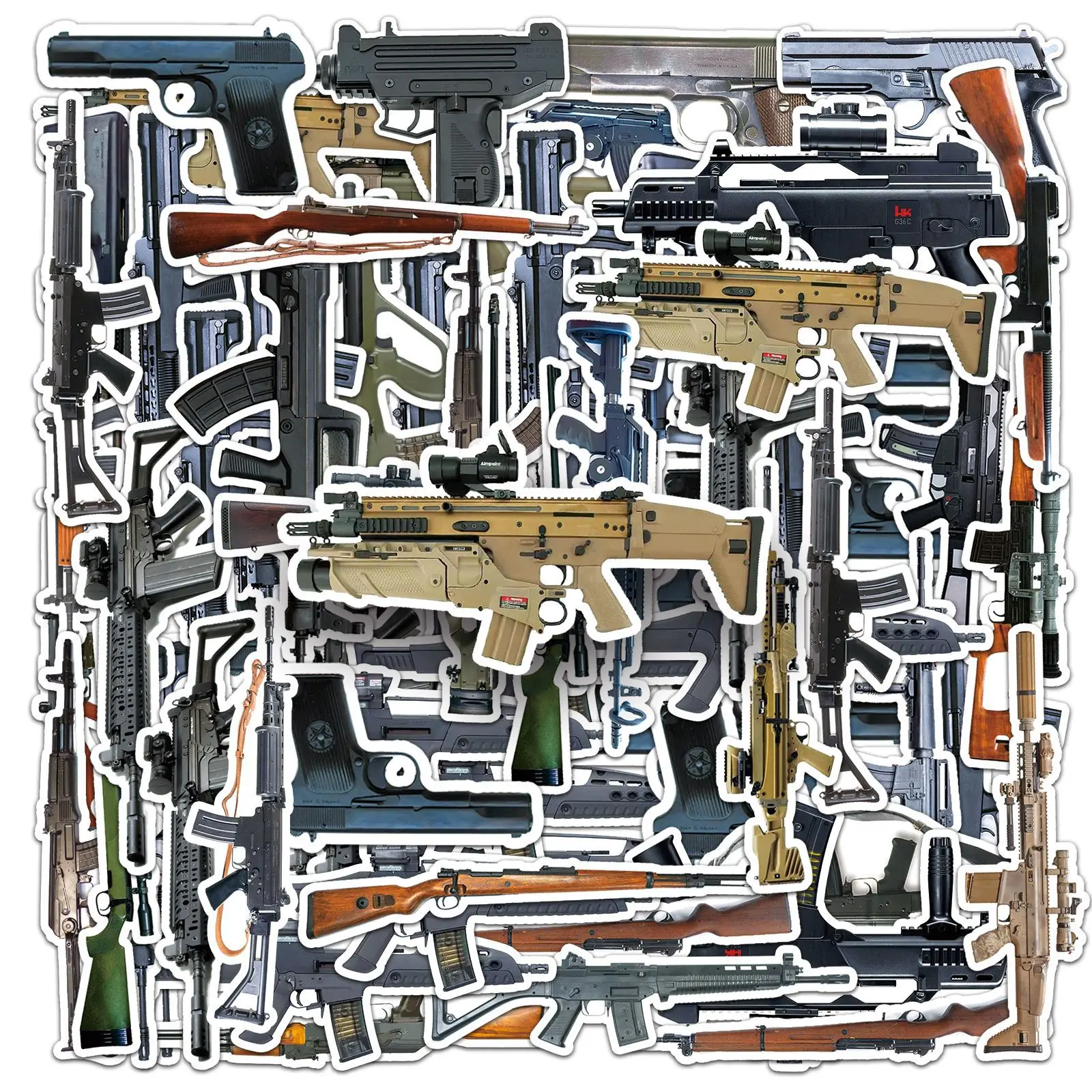 10/50PCS Military Gun Graffiti Sniper Gun Weapon DIY Decorative Mobile Case Suit