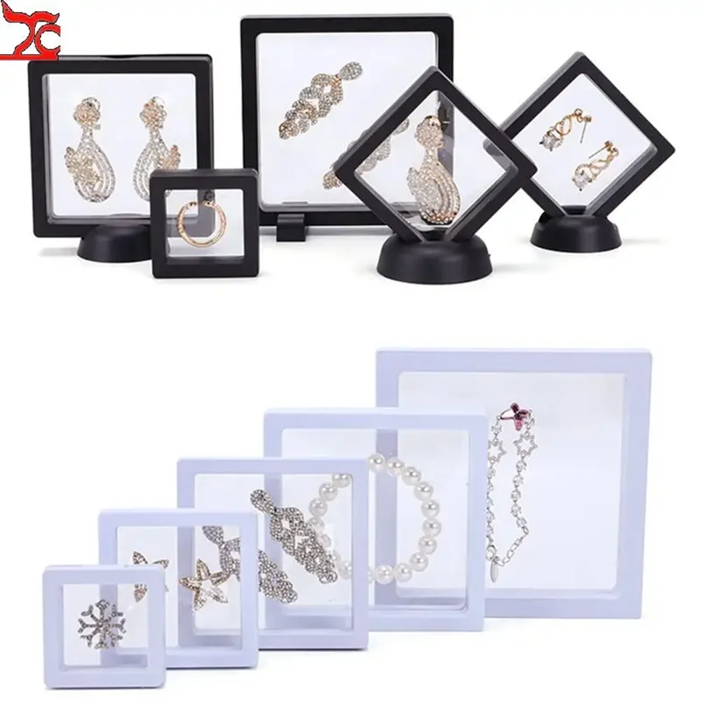 10 pc /lot Black or White Border Transparent PE Film Display Hanging Packaging Box Jewelry Ring Necklace Trinket Storage Box