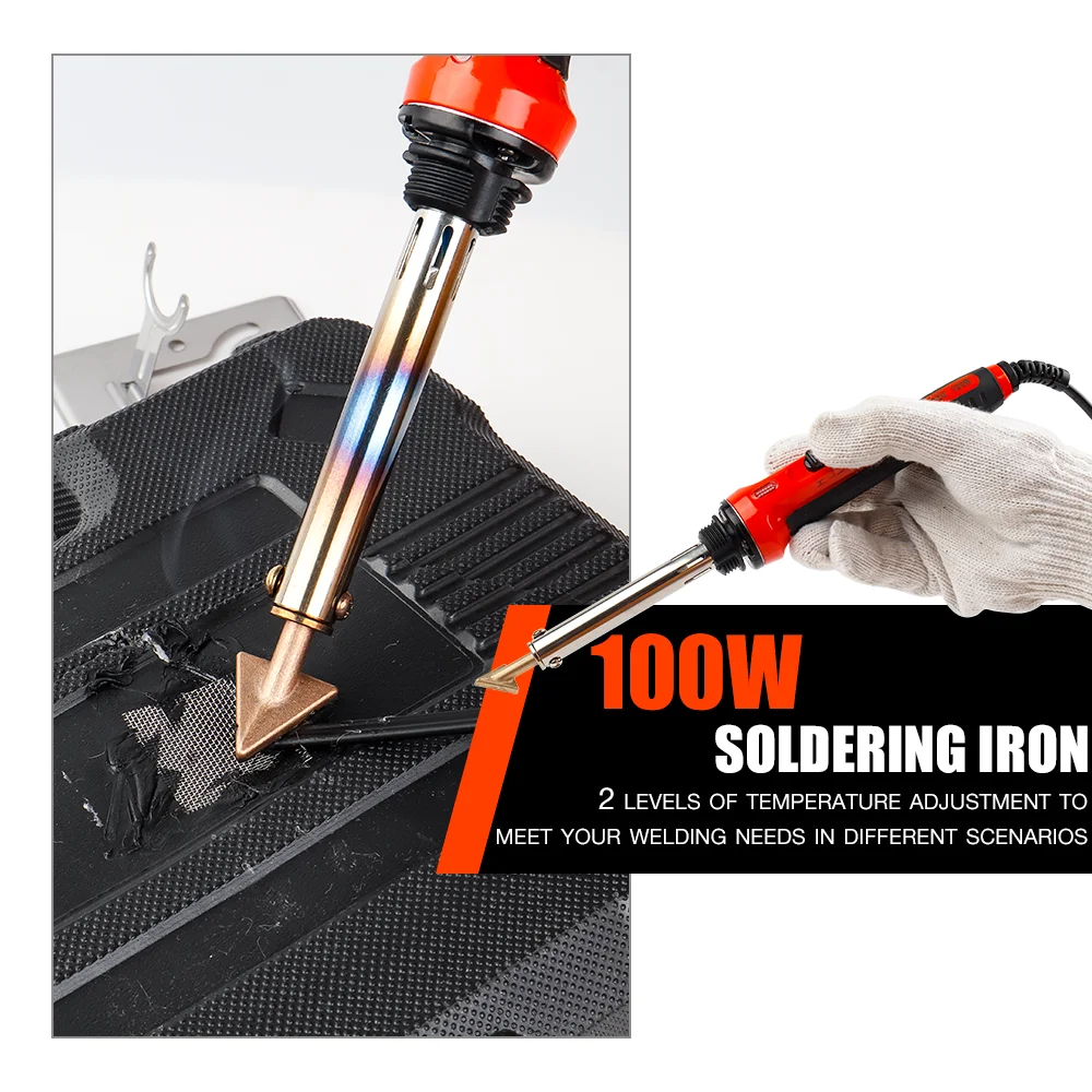 【2-Speed Adjustable Temperature and Indicator】: The plastic repair welder kit has high (100W) and low (60W) levels, which can heat quickly or slowly according to different repair materials. Newly designed switches and indicator lights (red - 100W, green - 60W) make it easy to confirm the working status and prevent burns. You can turn it off when not in use. Great soldering kit for beginners.