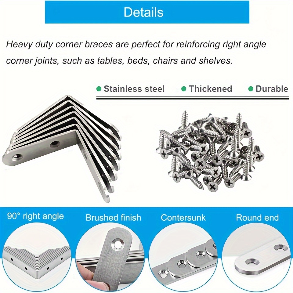 10Pcs Steel Corner Brackets with Screws 90-degree Right-angle Furniture Connecti