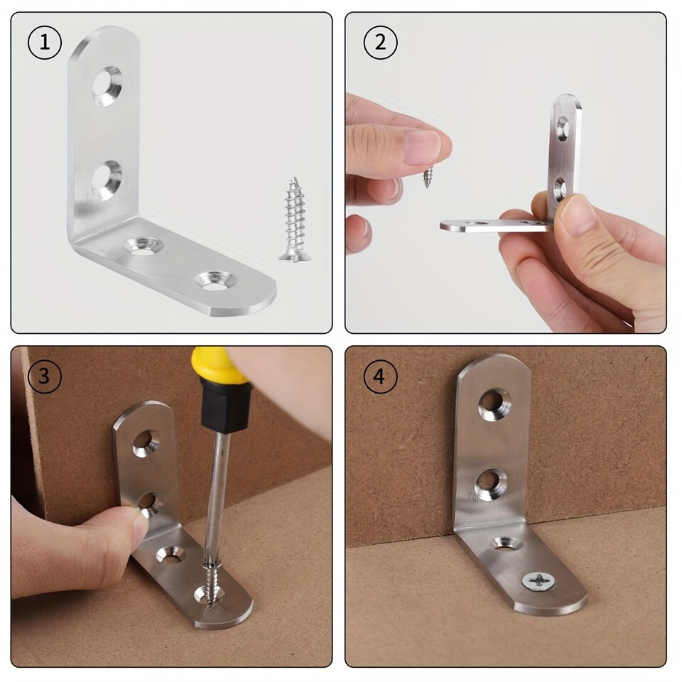 Wide Applications: The right angle bracket can fasten wooden bed, table, floating shelves, kitchen cabinet, shelf, wardrobe, bookshelf, etc.