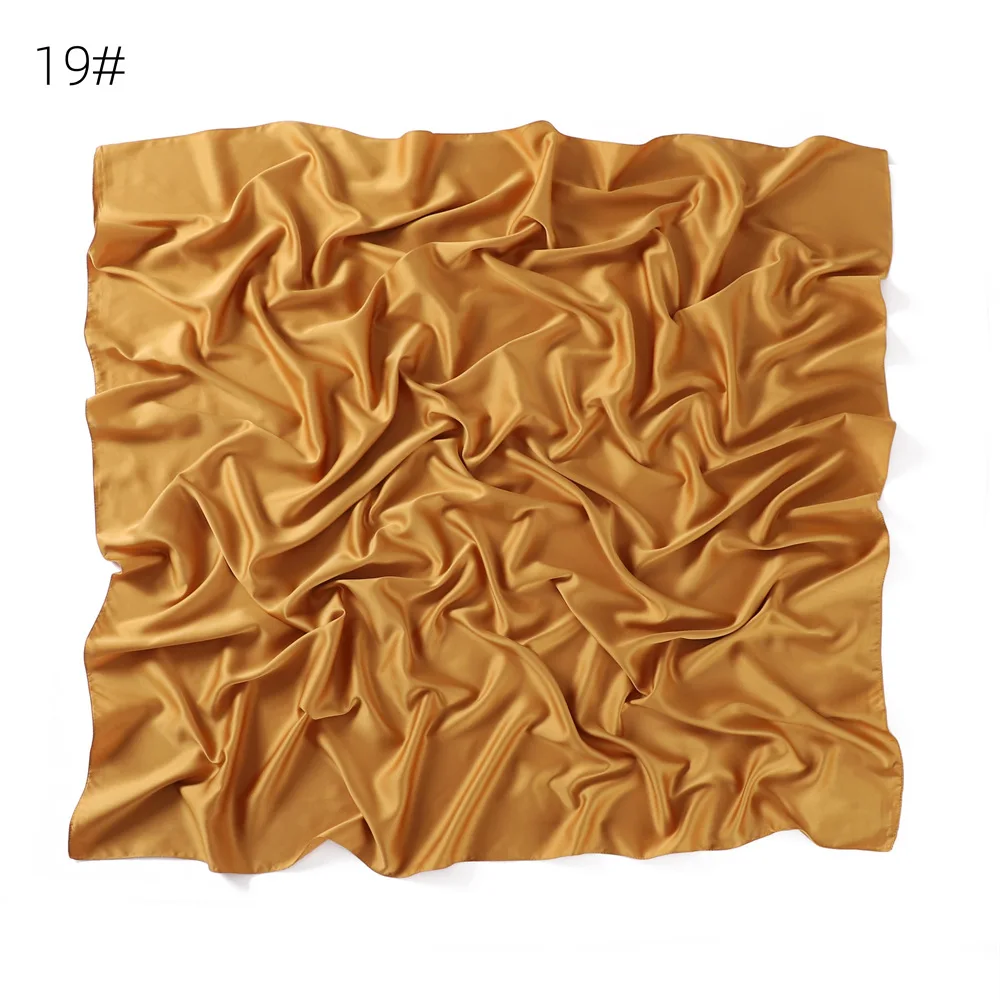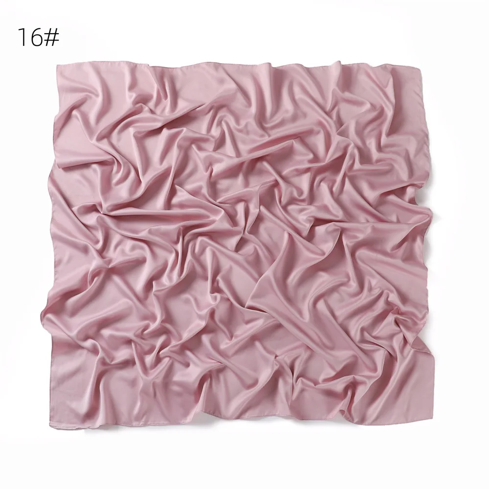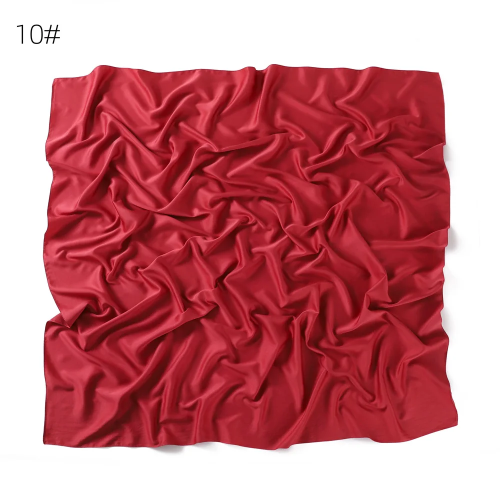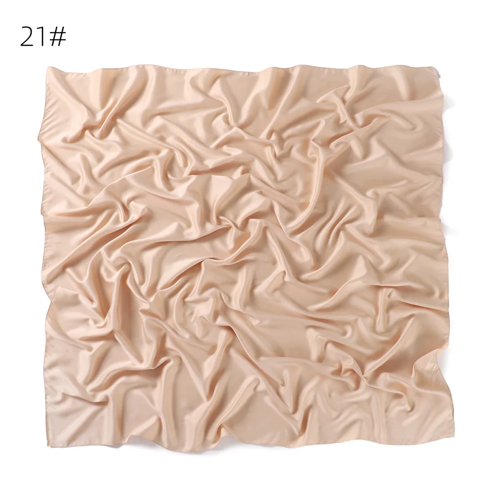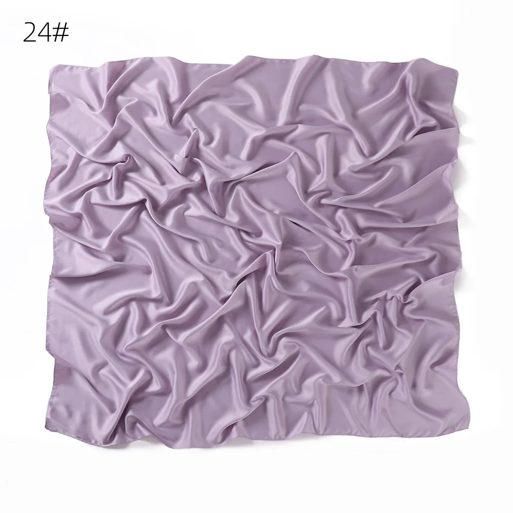 110*110CM Satin Silk Square Scarf For Women Muslim Hijab Shawl Headscarf Solid H