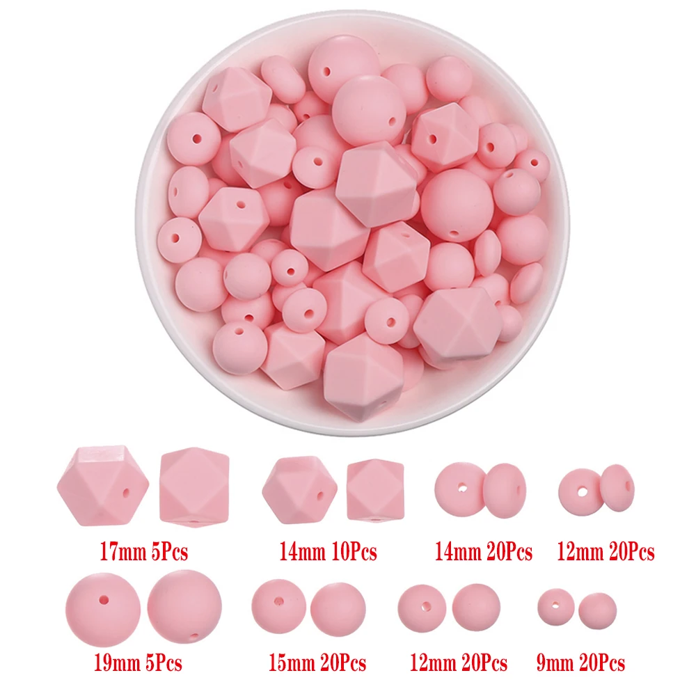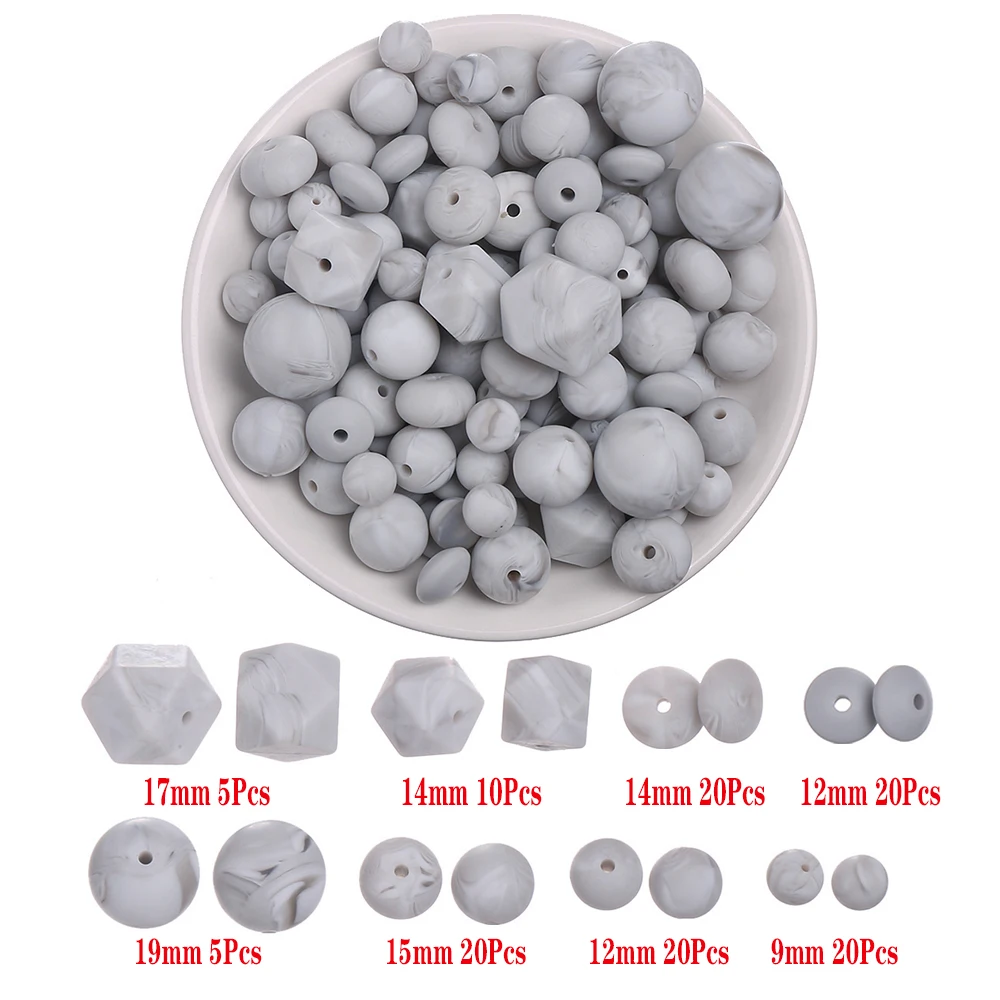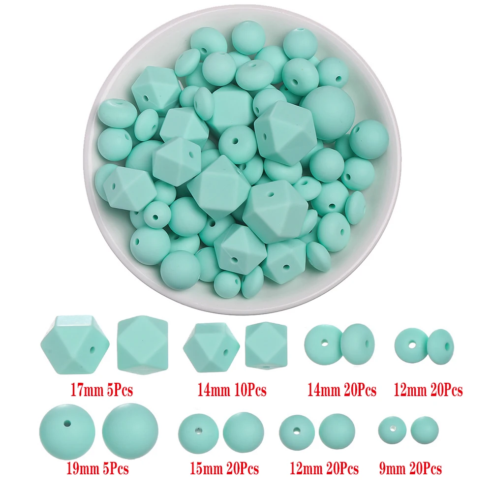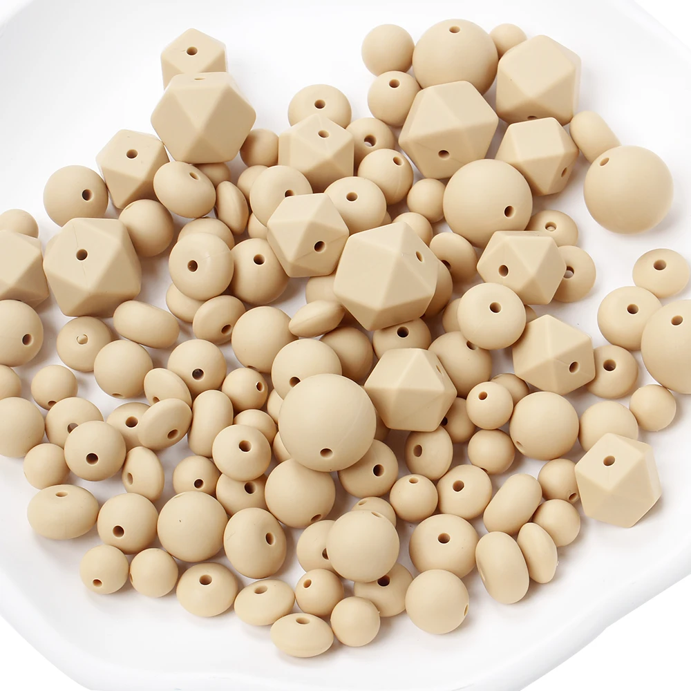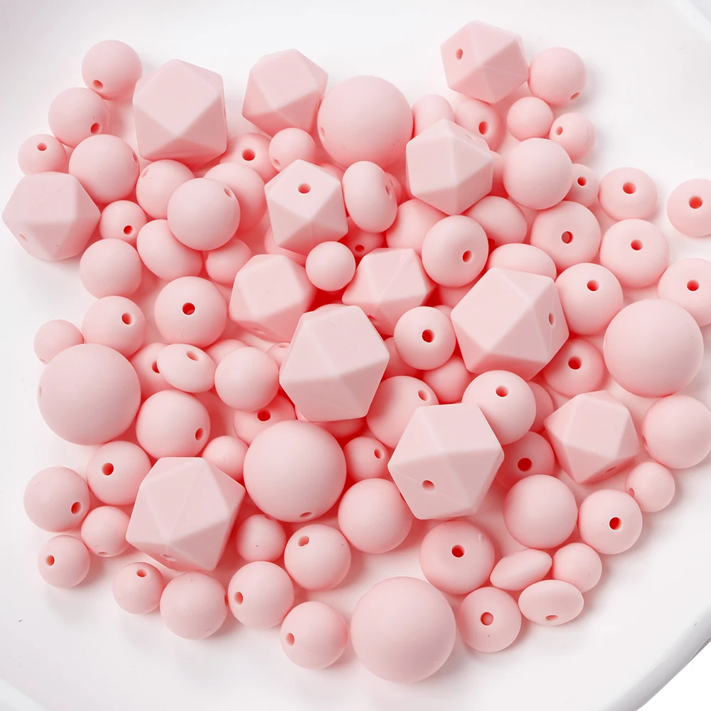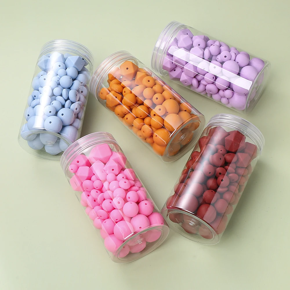 120Pcs New Silicone Beads Octagon Round Mixed Loose Beads Set Teether Toys Baby