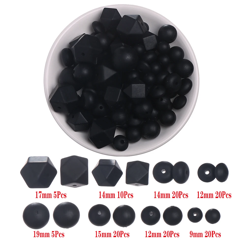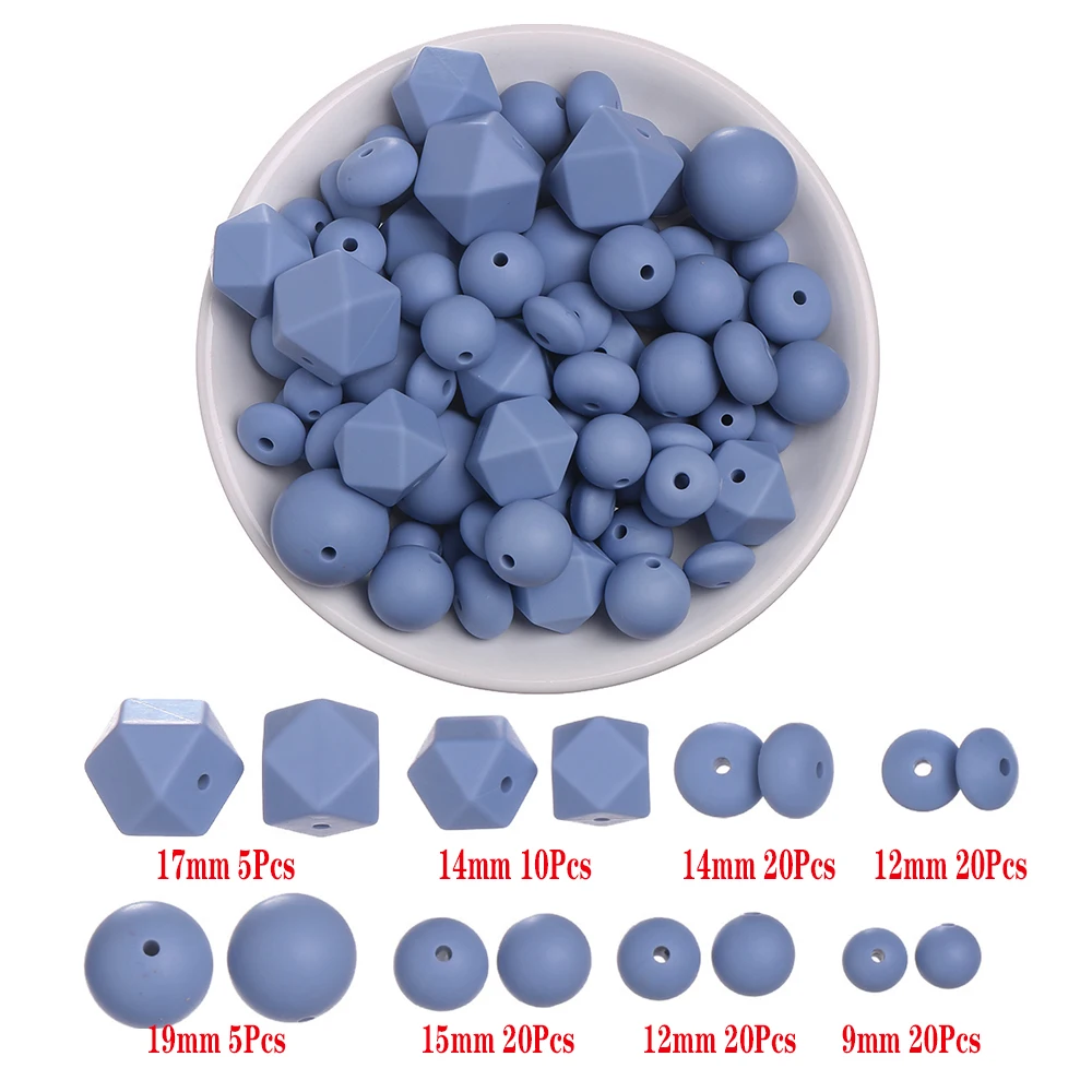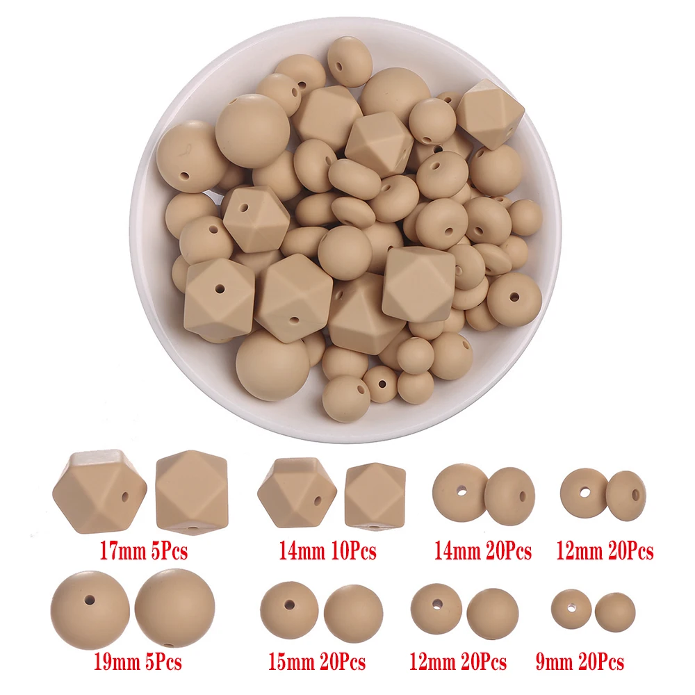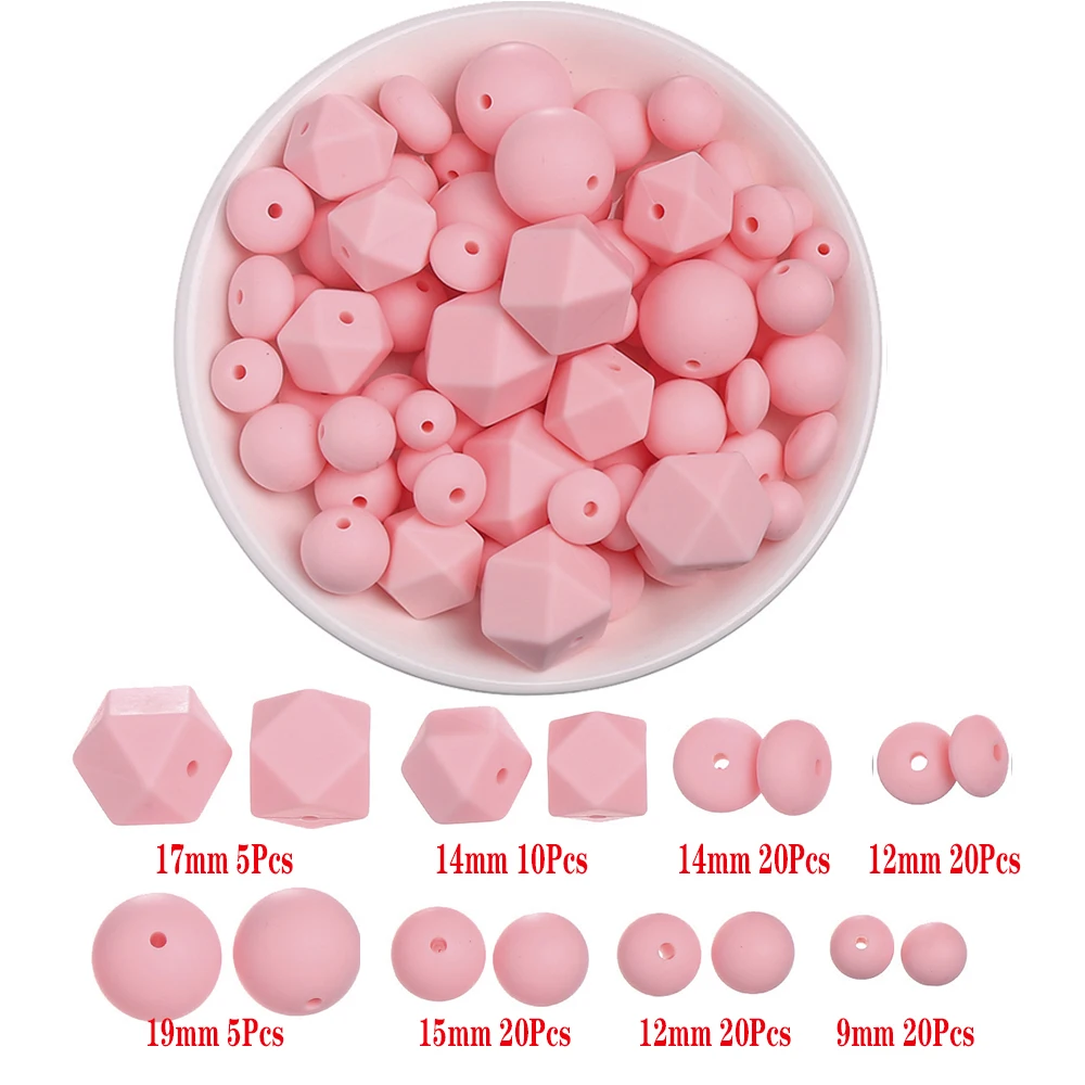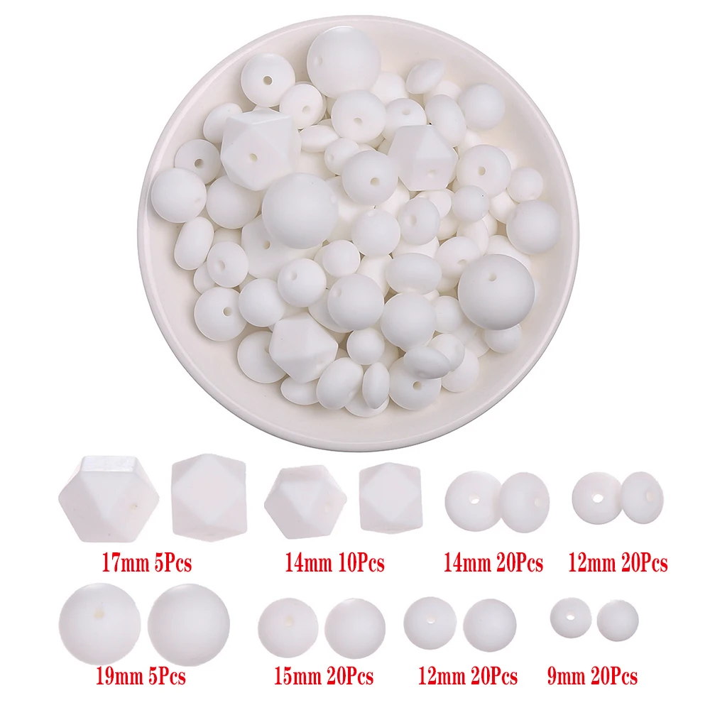 120Pcs New Silicone Beads Octagon Round Mixed Loose Beads Set Teether Toys Baby
