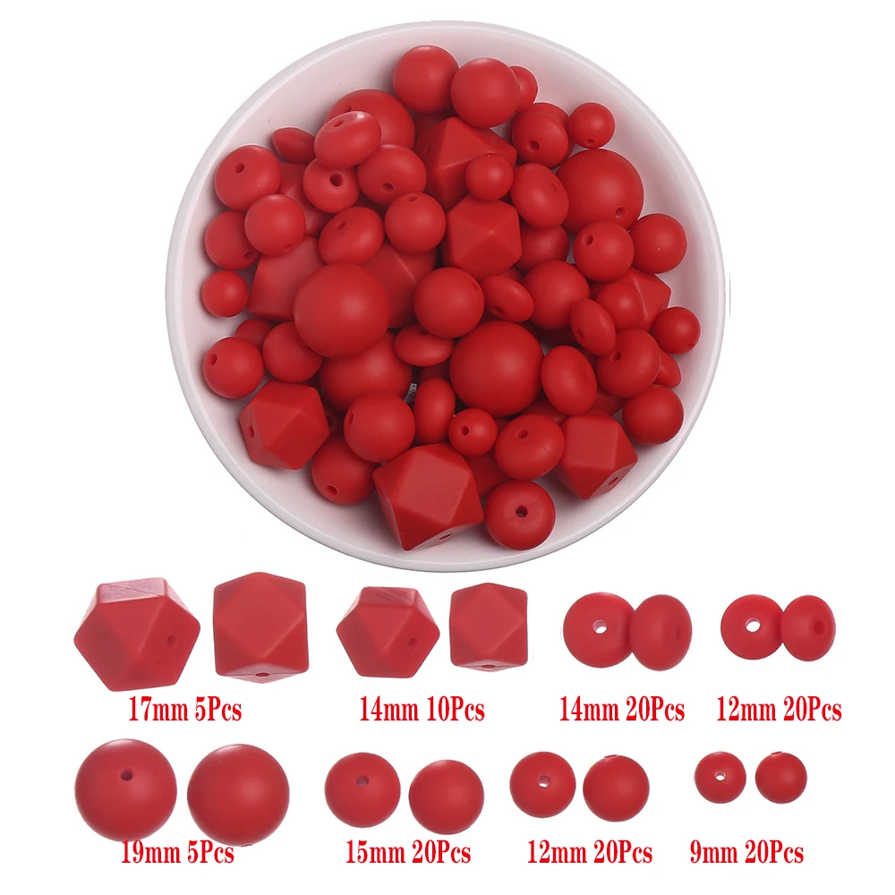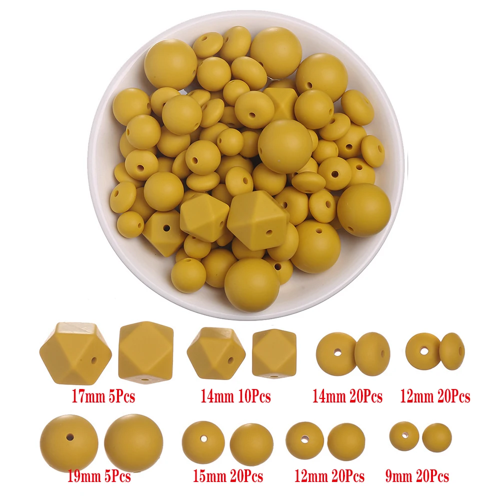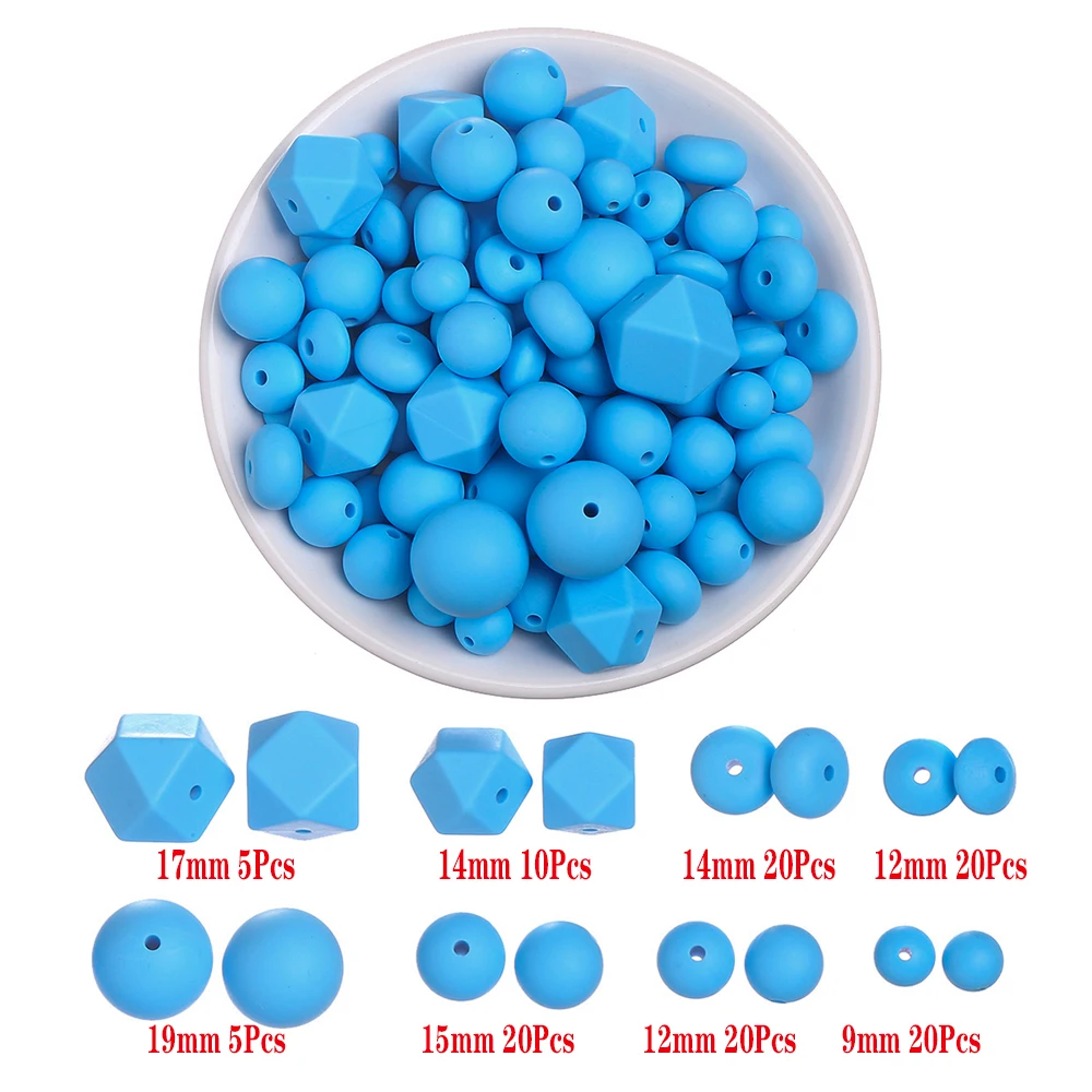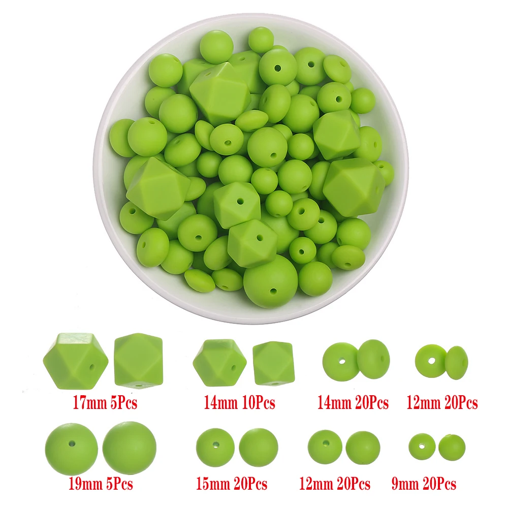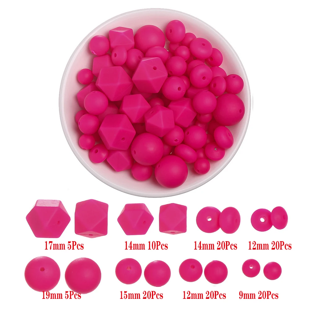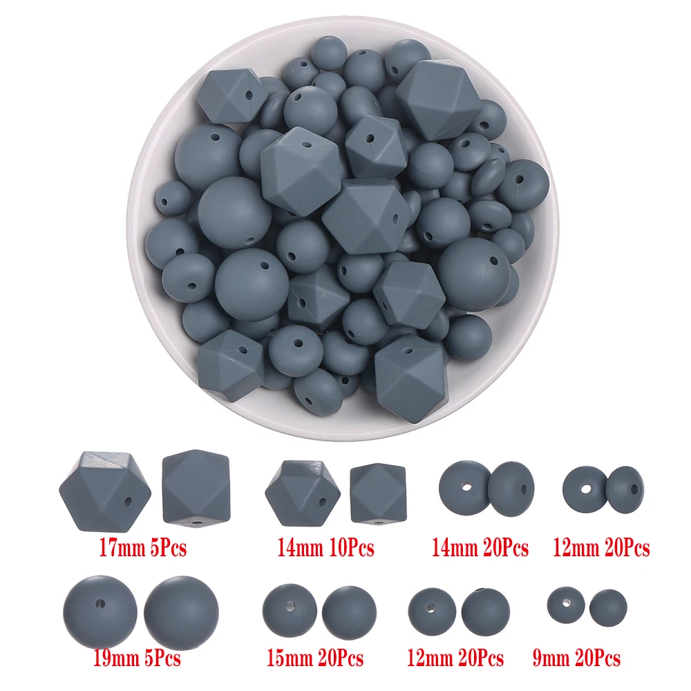 120Pcs New Silicone Beads Octagon Round Mixed Loose Beads Set Teether Toys Baby