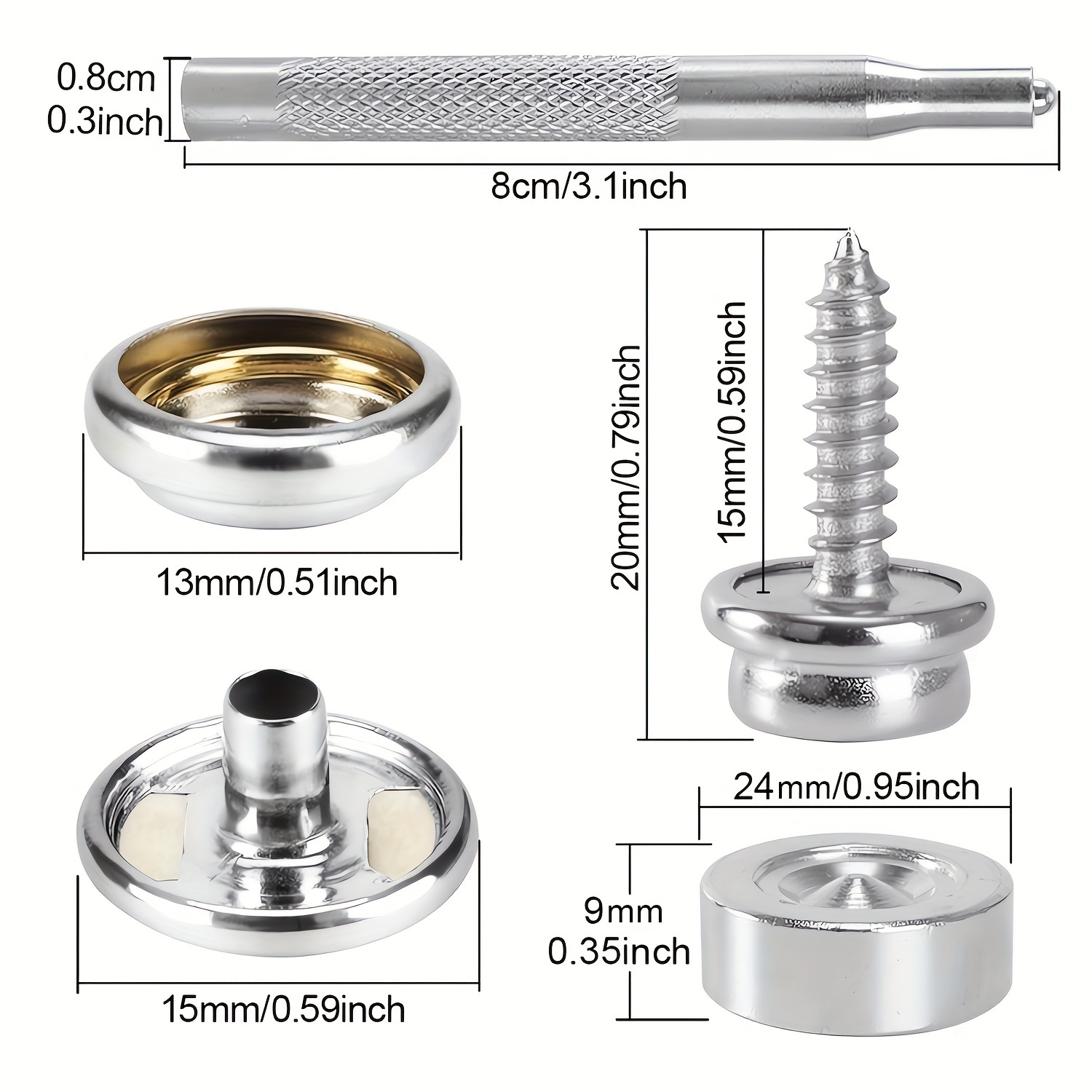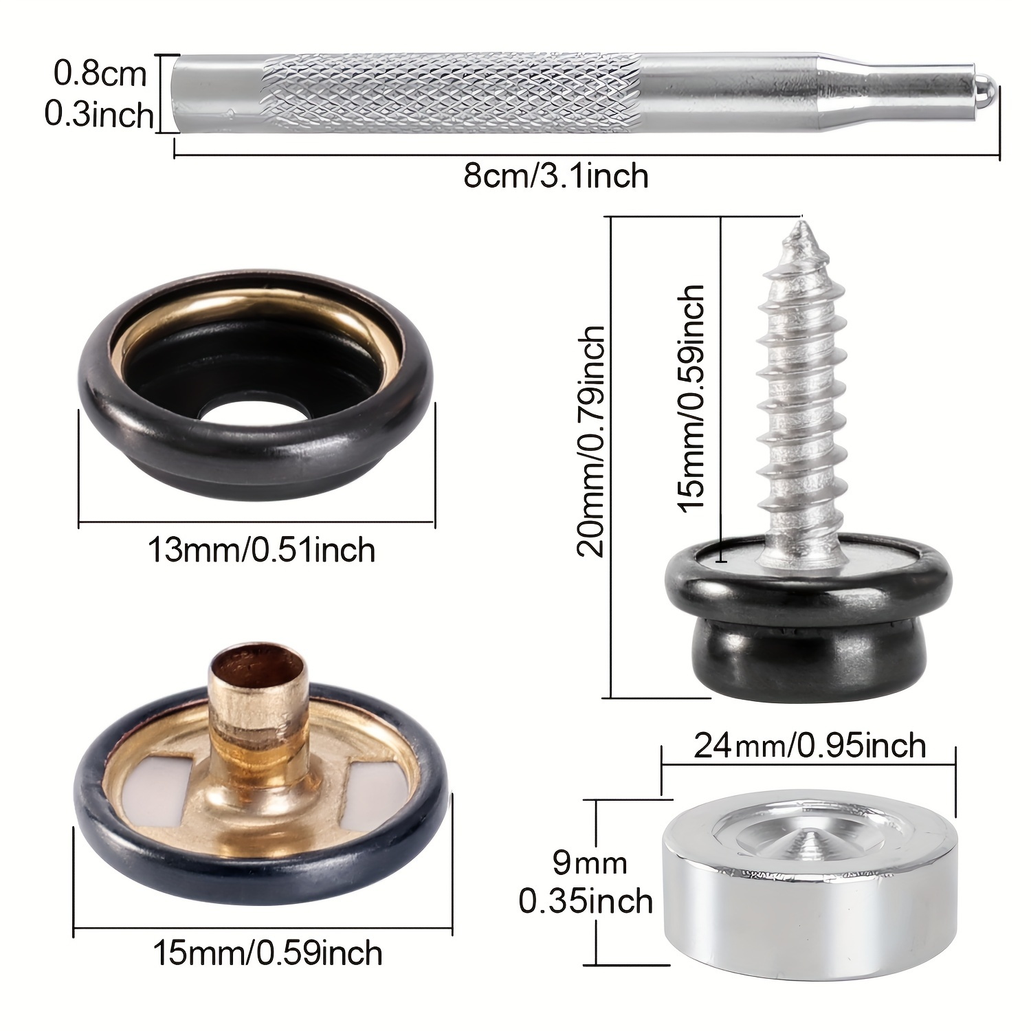 1. High-quality marine-grade copper and stainless steel Canvas Snap Kit Tool with superior rust resistance.