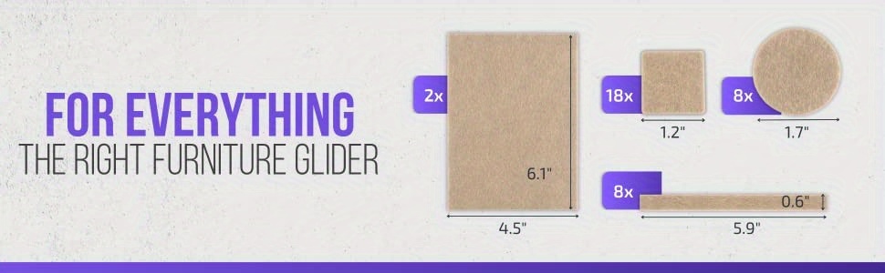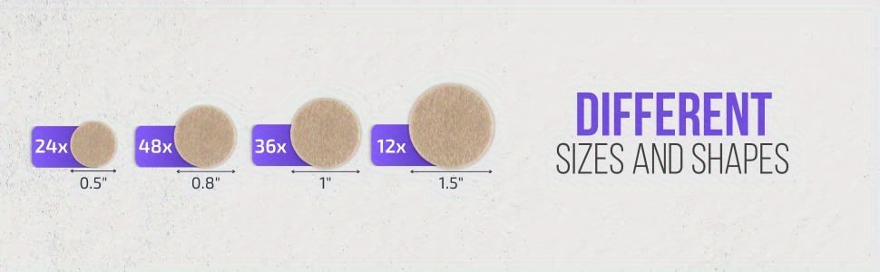 LARGE PACK WITH ALL SIZES: This beige 156 pieces pack has everything you need for your floor protection - 24 PCS 0.5", 48 PCS 0.8", 36 PCS 1", 12 PCS 1.5", 18 PCS 1.2", 8 PCS 1.7", 2 PCS 4.5"x6.1", 8 PCS 5.9"x0.6"