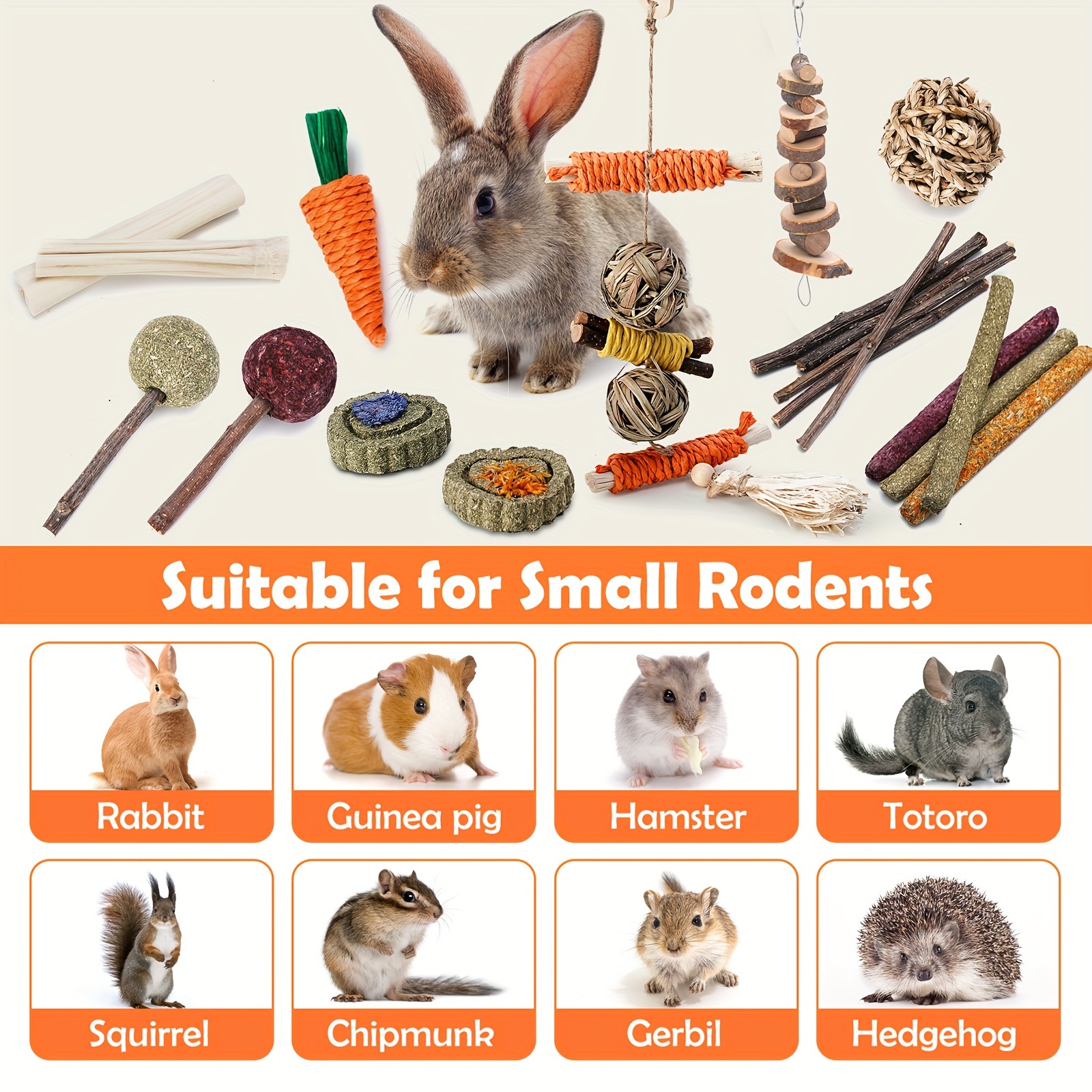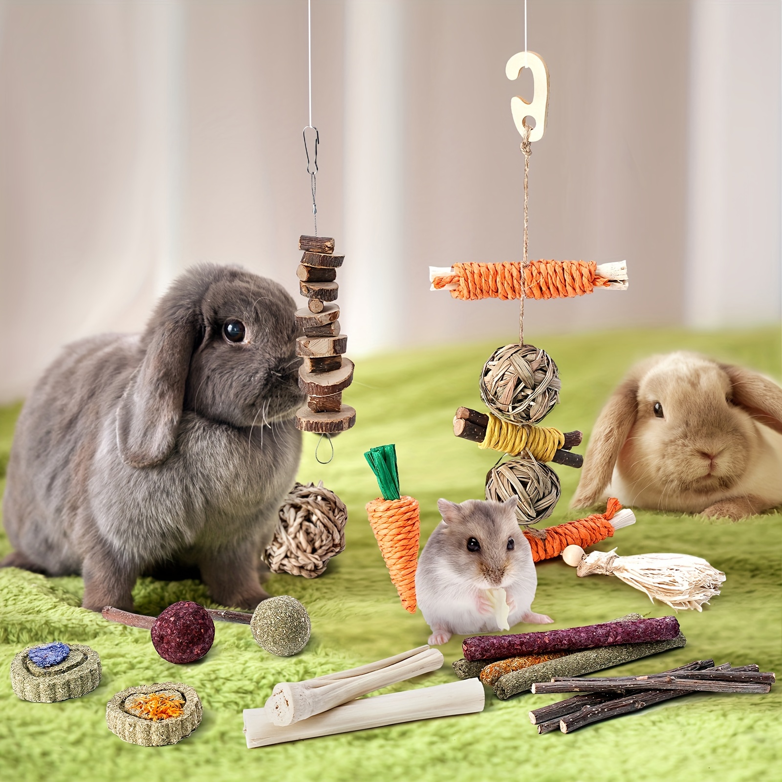 SPECIFICATIONSApplicable animals: RabbitsItem ID: TR83051Major Material: Made Of Other Plant Materials19pcs Rabbit Chew Toys, Natural Wooden Pet Teething Playthings, Assorted Animal SKU: 32174665$20.25PriceQuantity*19pcsAdd to CartBuy Now