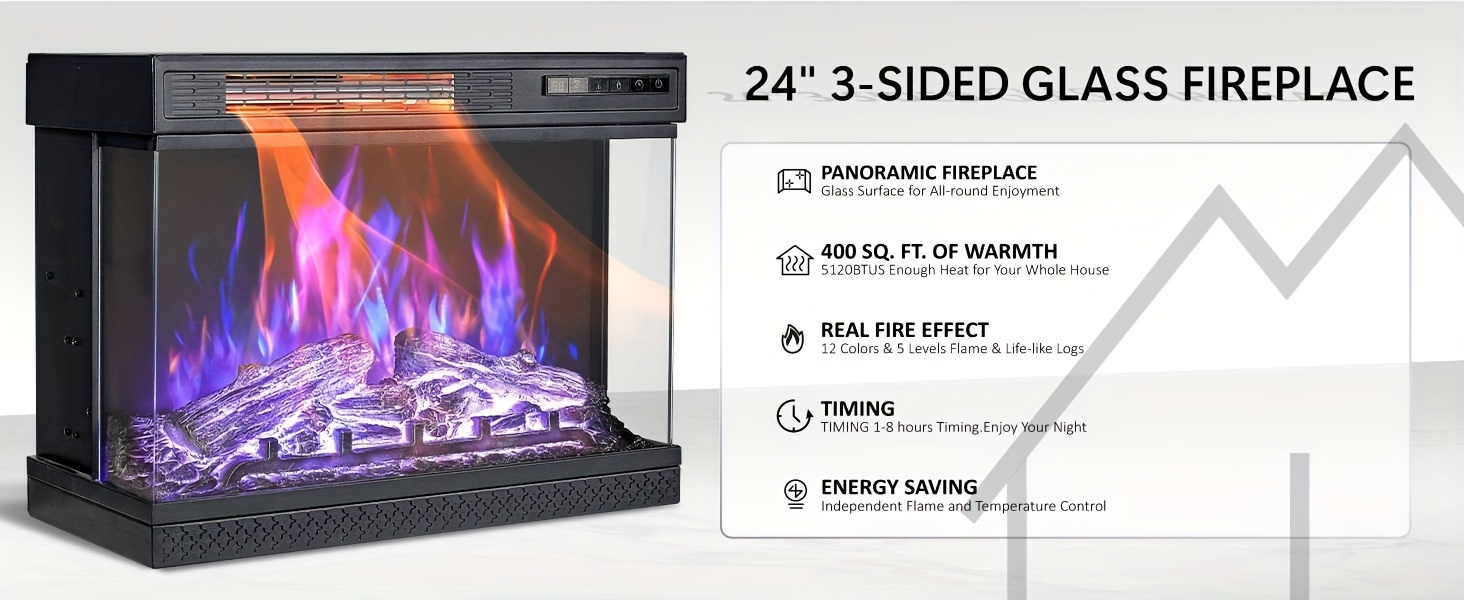 1pc Electric 3-Sided Glass Fireplace TV Stand For TVs Up To 65'', With 12 Color