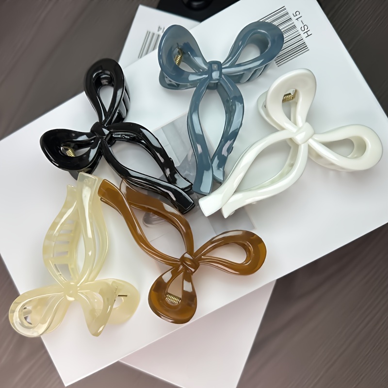 1pc Elegant Bowknot Hair Clip, Plastic, Shiny Bead Finish, Simple & Chic, Trendy