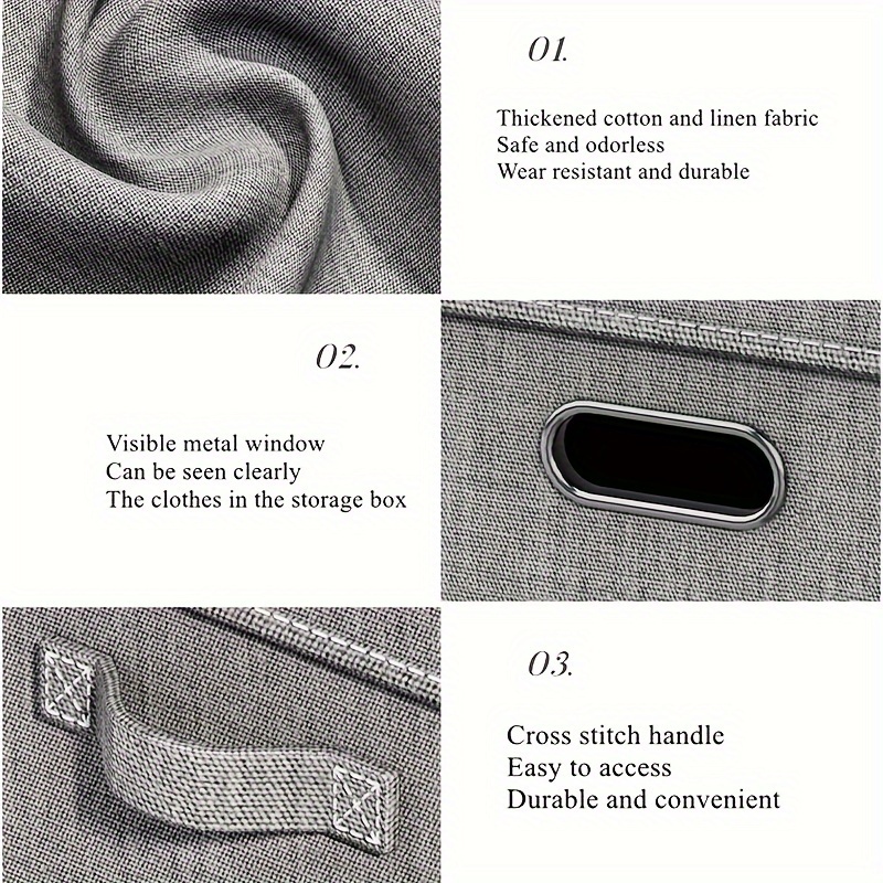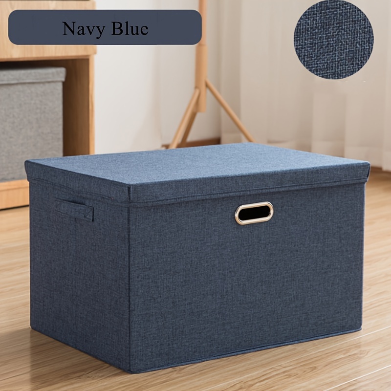 A spacious and durable cotton linen storage basket with lids, perfect for organizing clothes, toys, and other items in your closet, bedroom, office, or nursery.