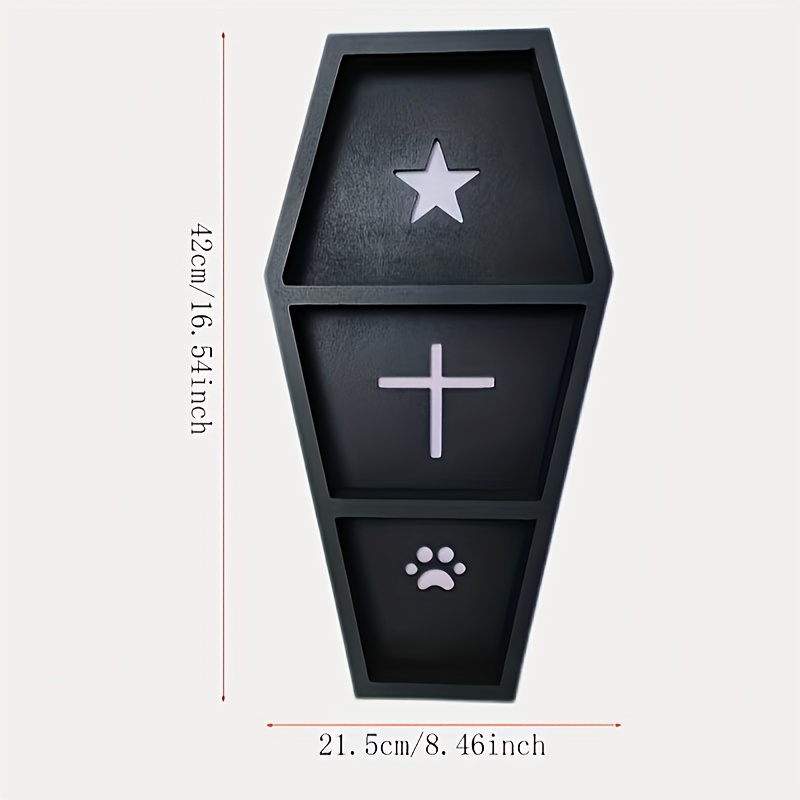 SPECIFICATIONSFeature: HookItem ID: RY37210Material: WoodMounting Type: Wall hangingRoom Type: Various Room TypesStyle: Classic1pc Hollow Out Star Moon Shelf, Cross Coffin Shaped Storage Rack, Wall Mounted SSKU: 59606860$25.32PriceOut of Stock