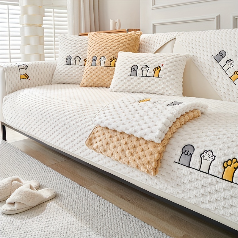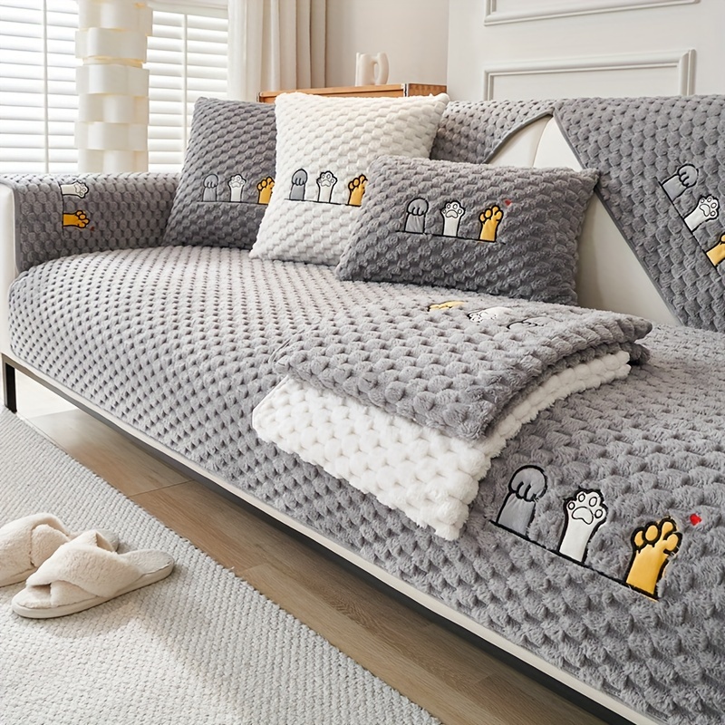 1pc Honeycomb Velvet Sofa Cover, Embroidered Pet Favorite, Dog Friendly Sofa Sli
