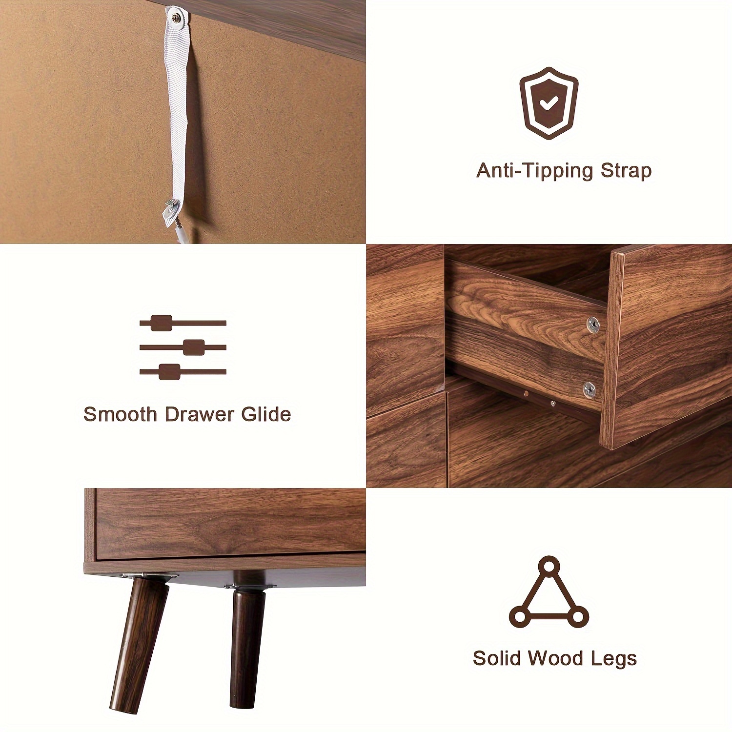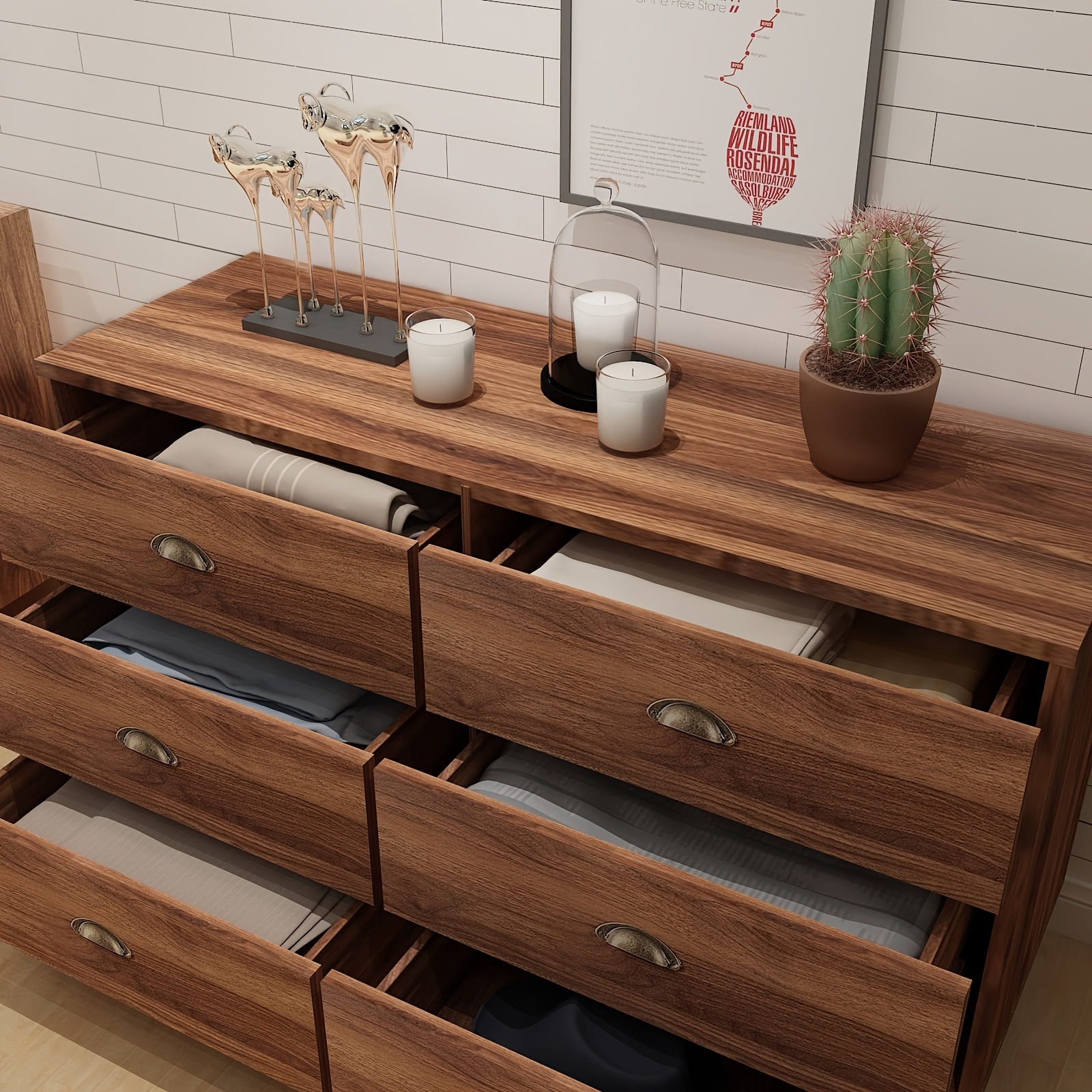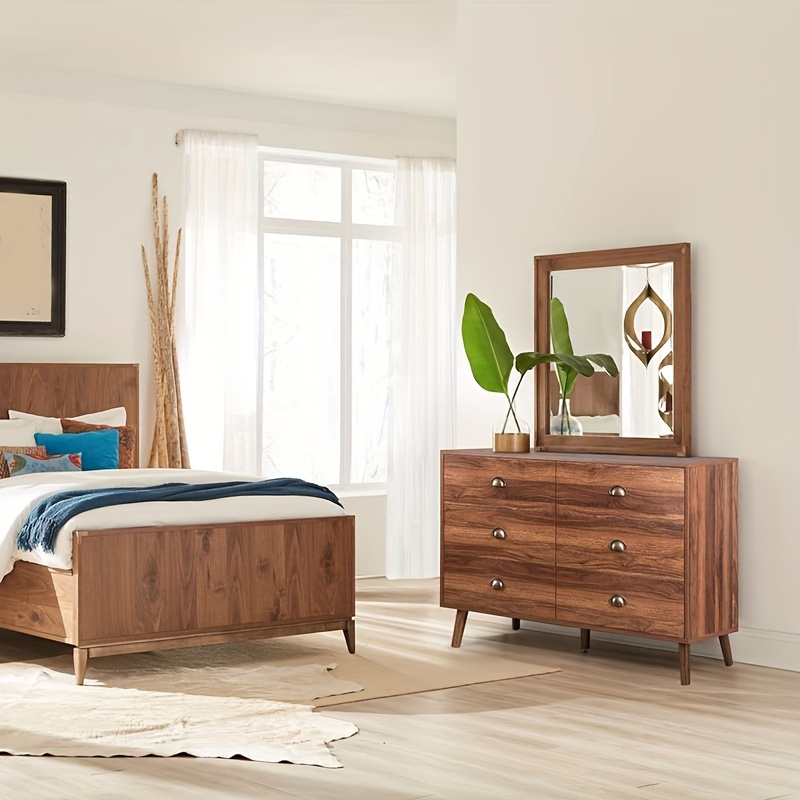 1pc Large Capacity 6-Drawer Modern Solid Wood Dresser Storage Cabinet with Black