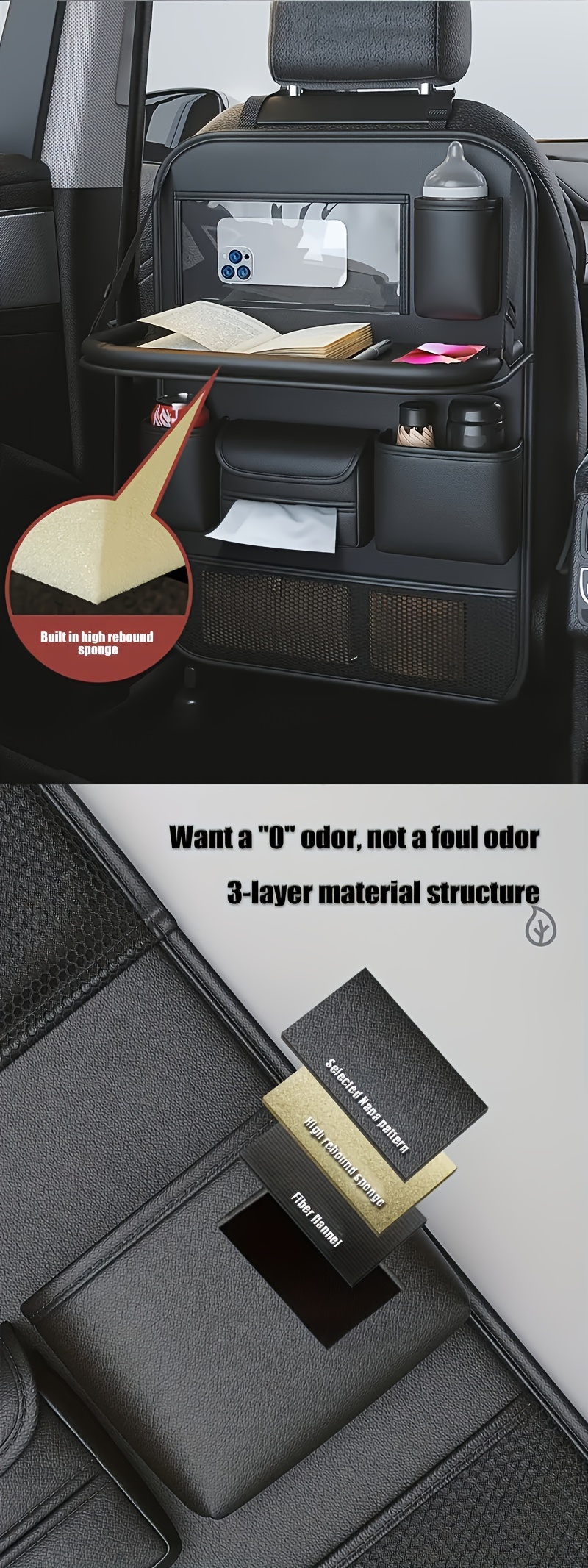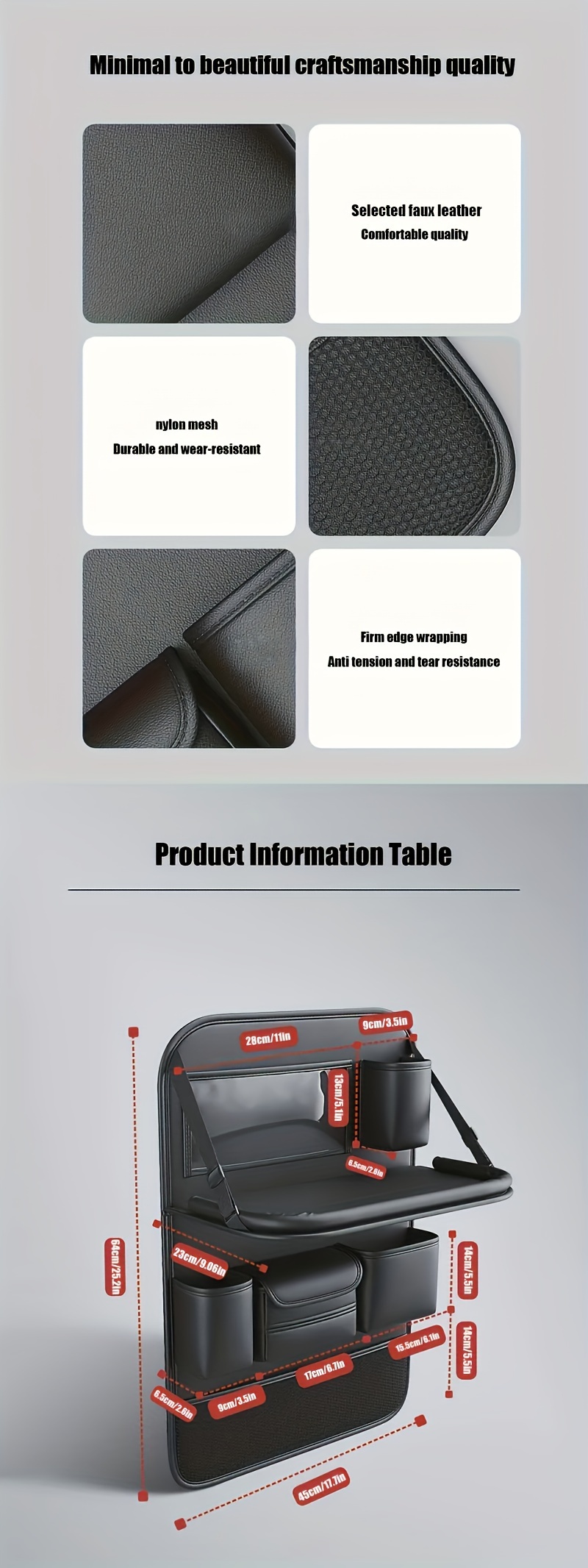 SPECIFICATIONSItem ID: KN79656Material: Other material1pc Luxe PU Leather Car Backseat Organizer with Foldable Tray - Multi-Pocket StoSKU: 16110462$42.98PriceQuantity*1pcAdd to CartBuy Now