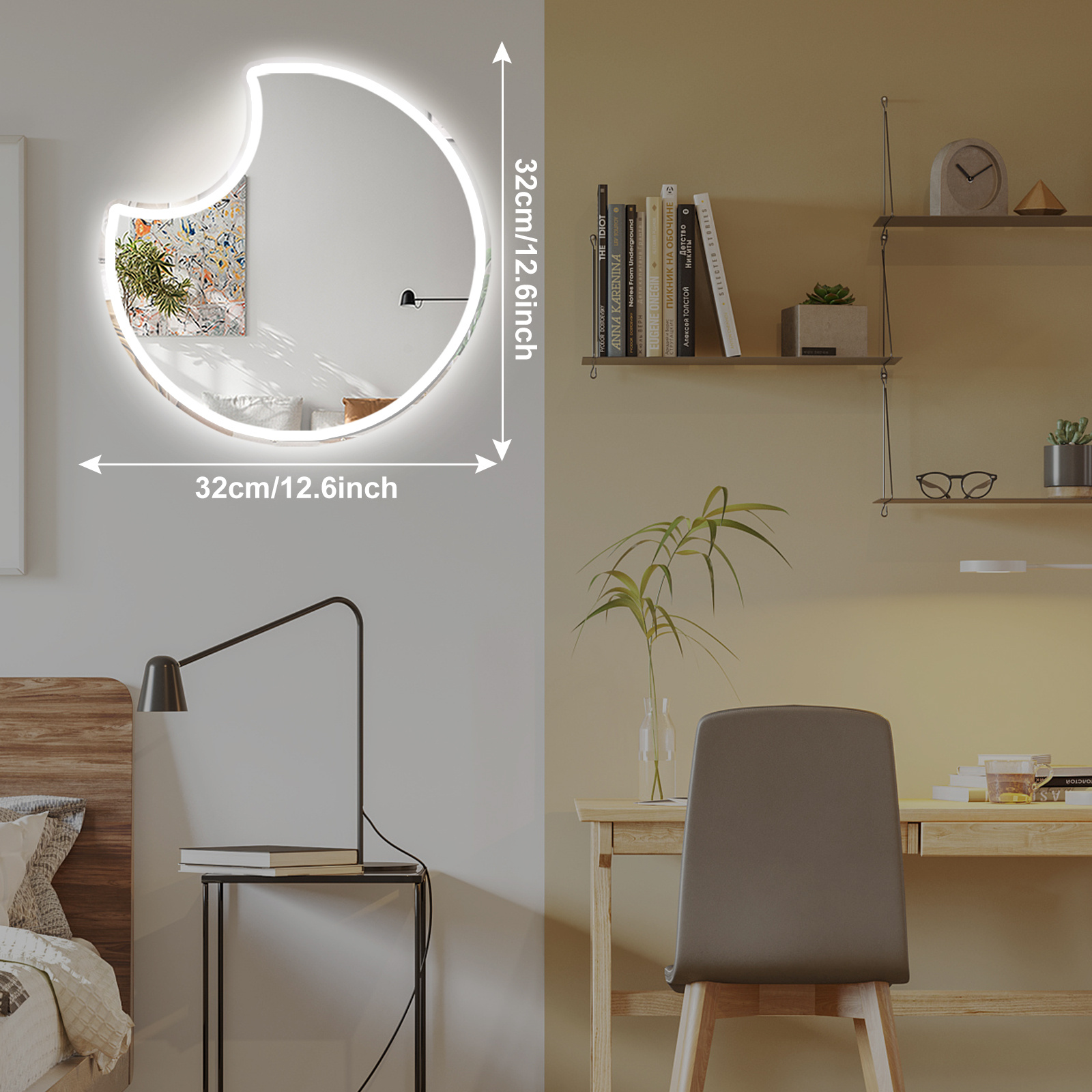 1pc Moon Mirror Neon Signs, USB Powered Mirror Neon Signs For Wall Decor, White