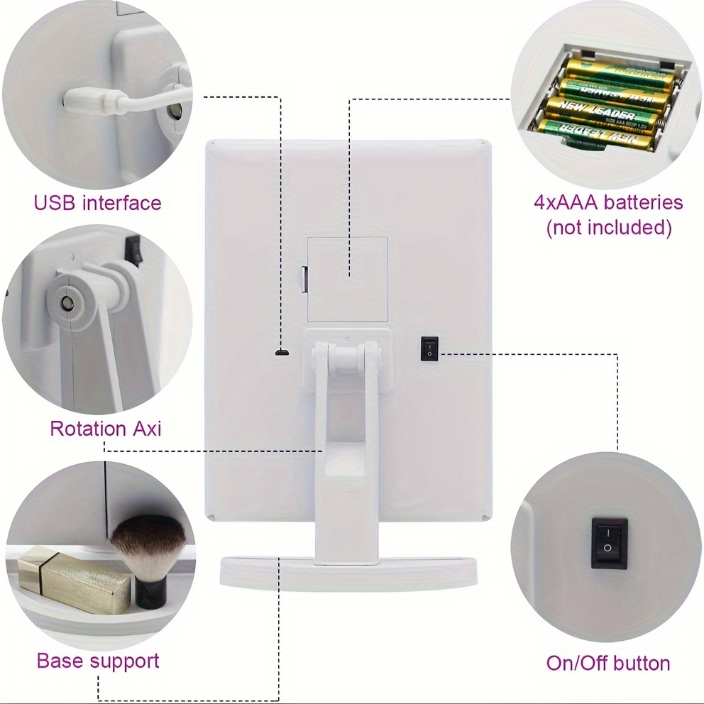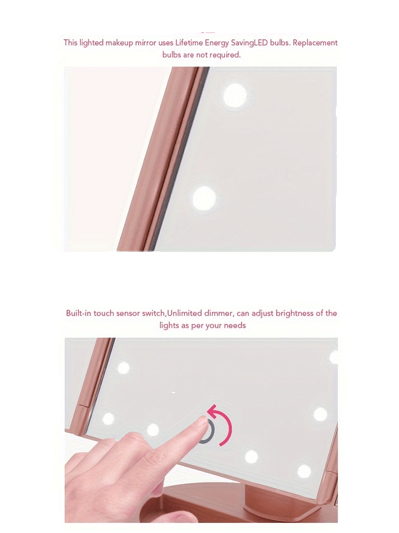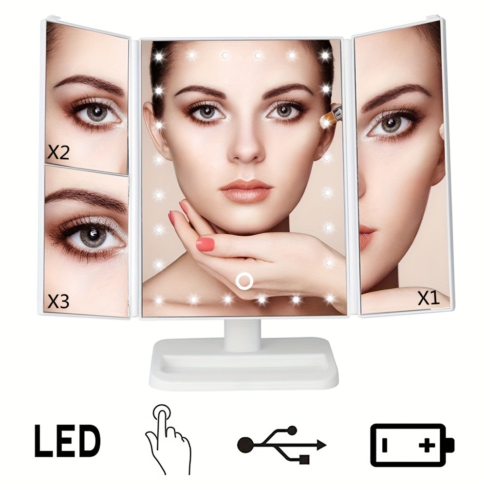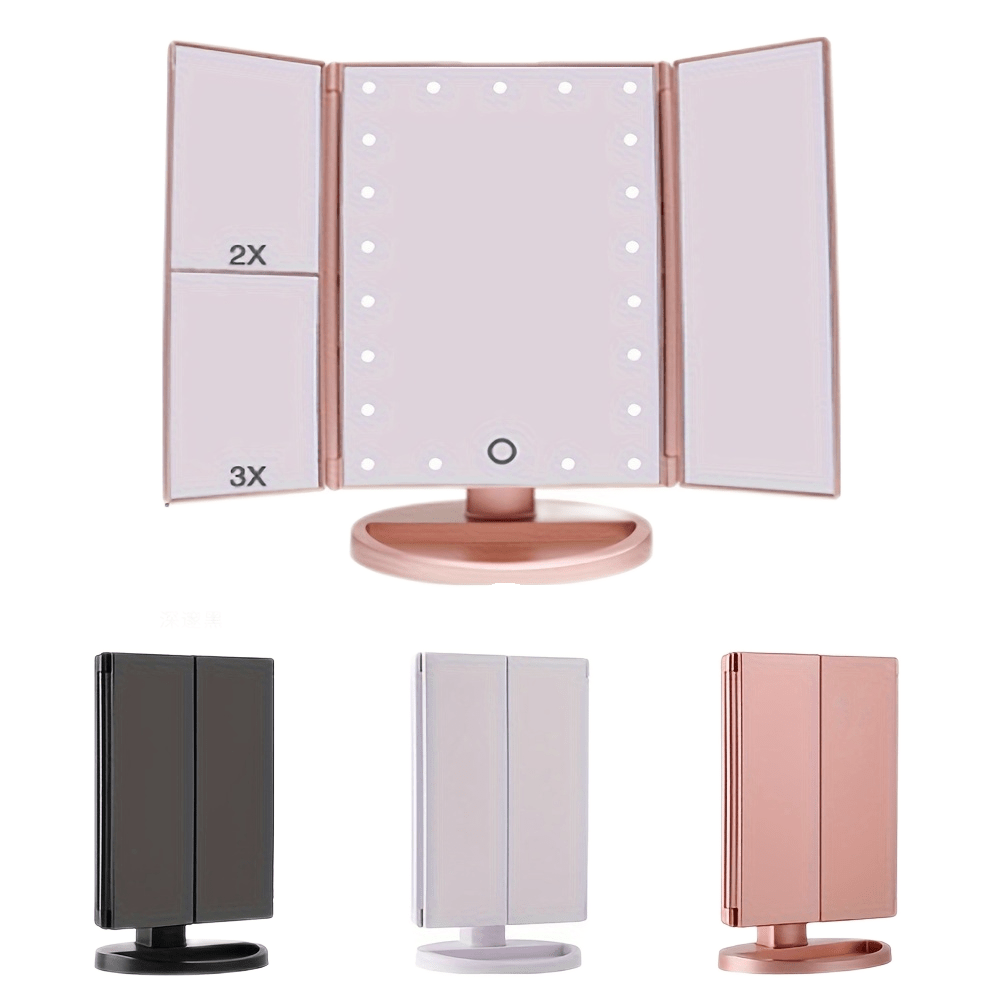 1pc Tri-folded Table Makeup Mirror - Standing Mirror With Lights, Smart LED Cosm