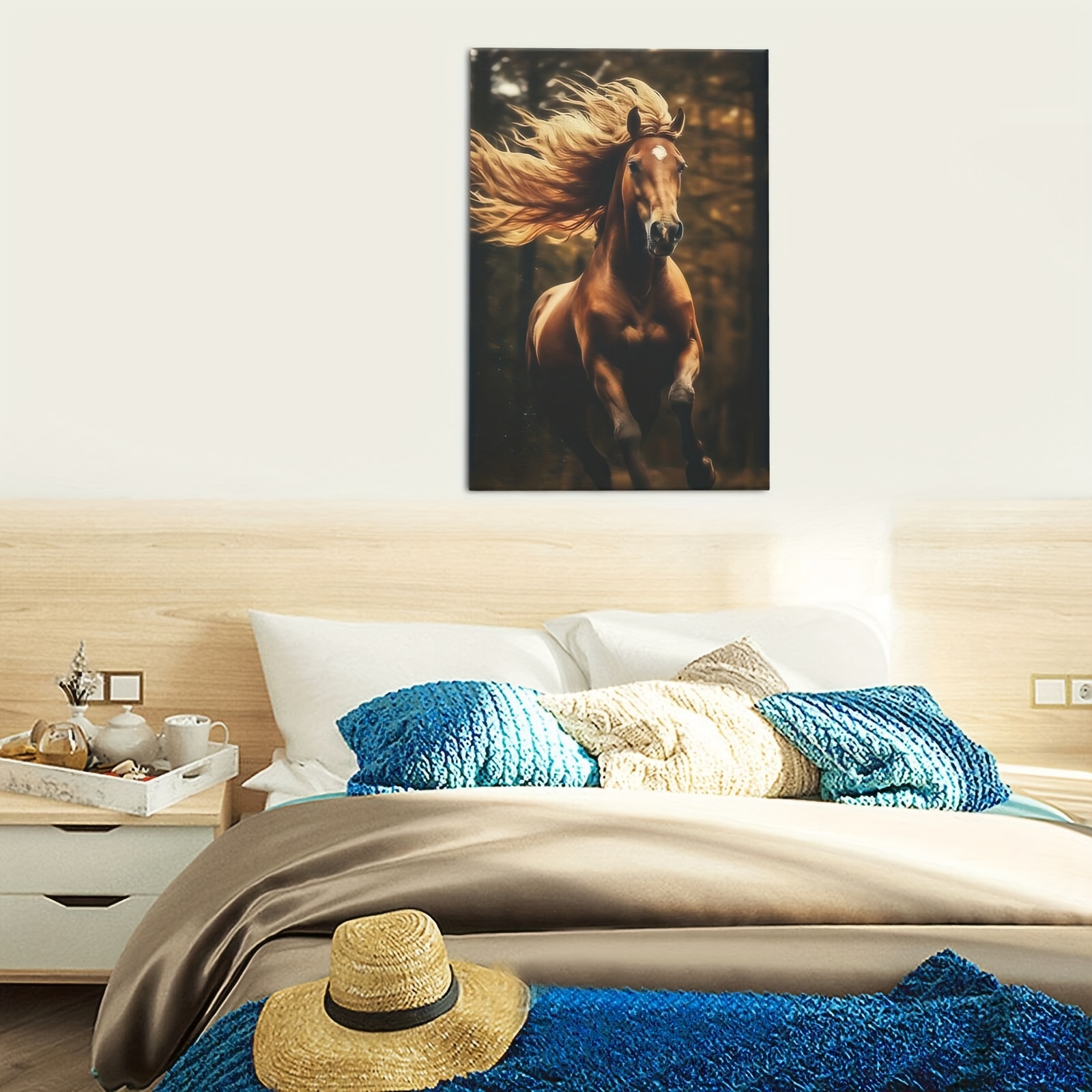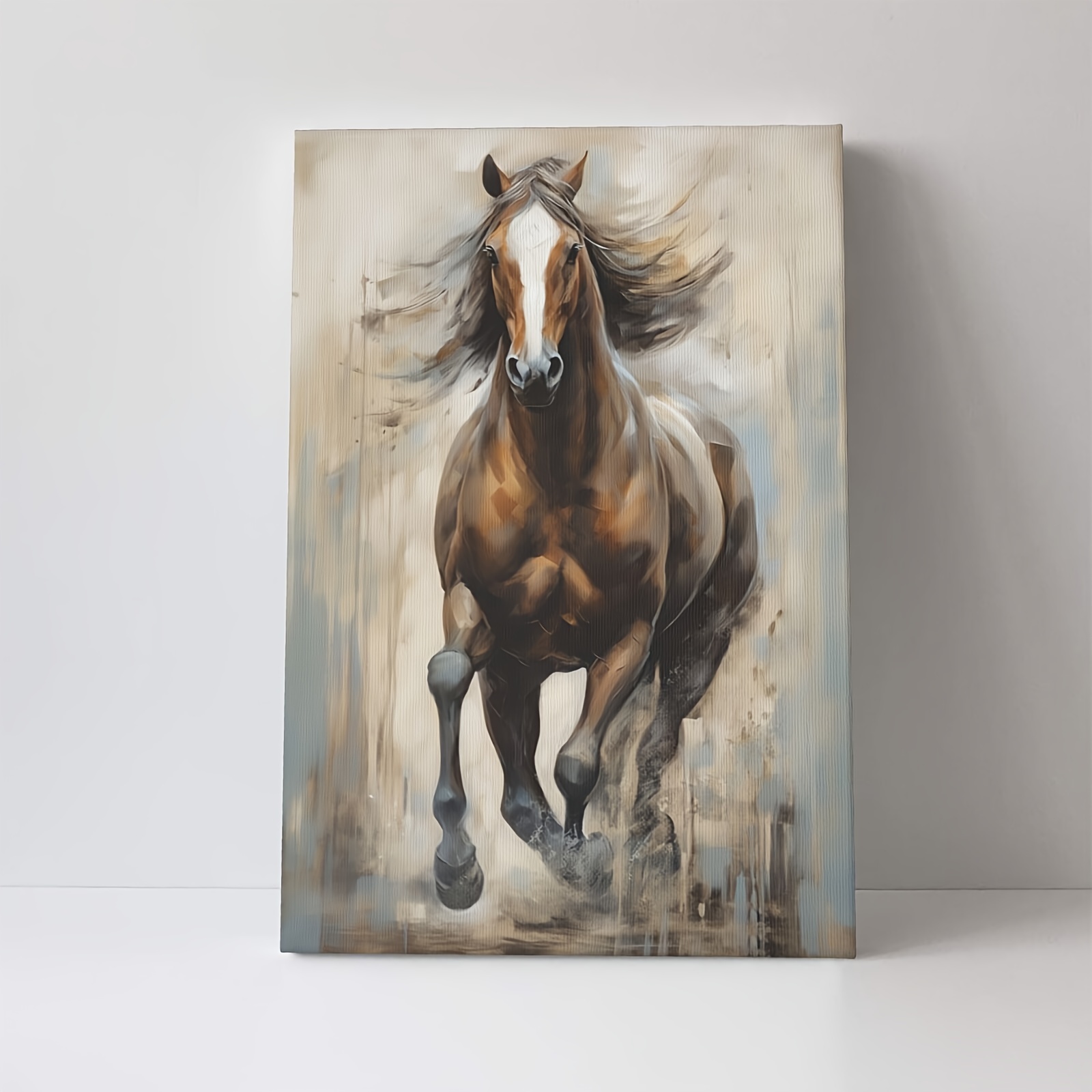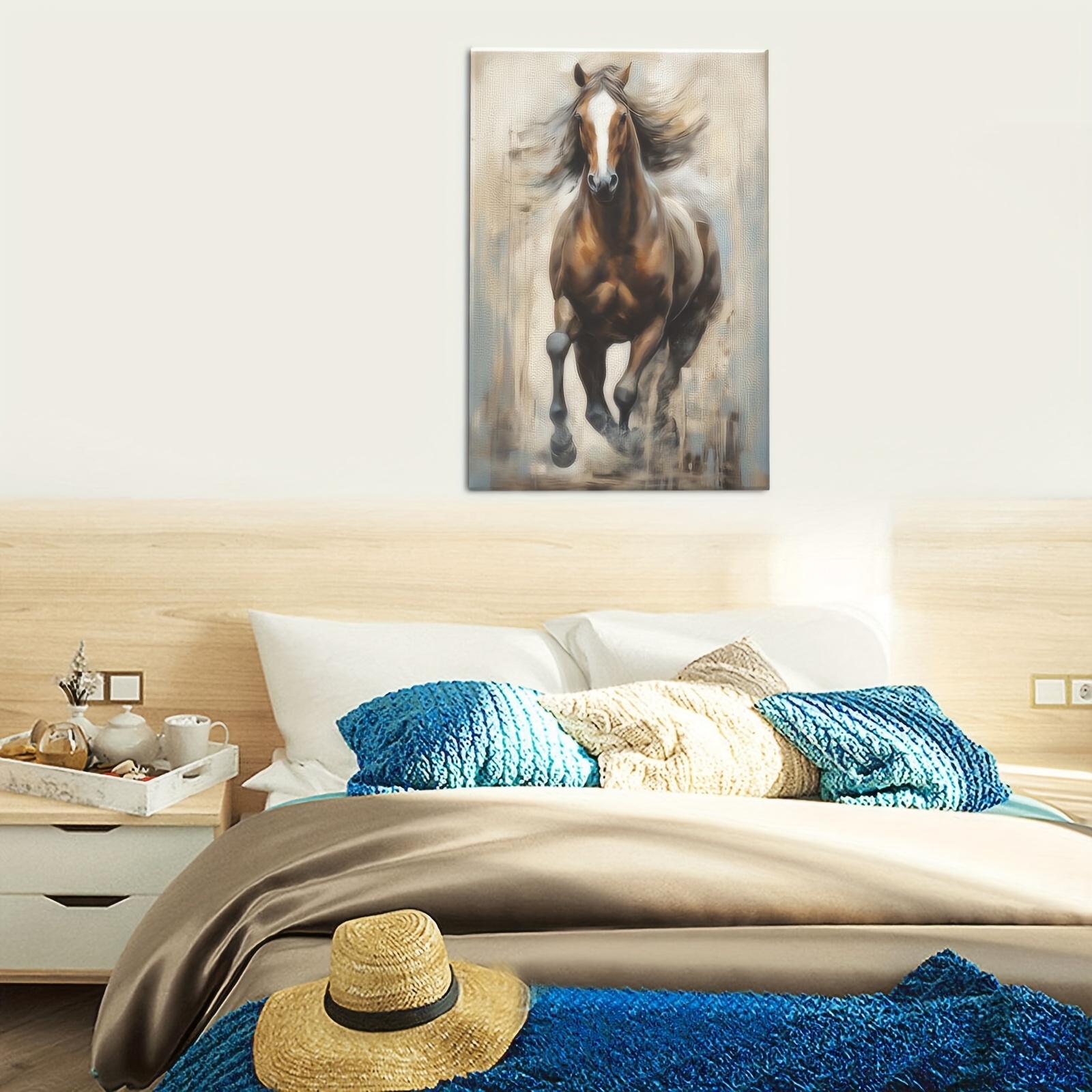 1pc Vintage Brown Horse Canvas Wall Art - Timeless Elegance with Wooden Frame -