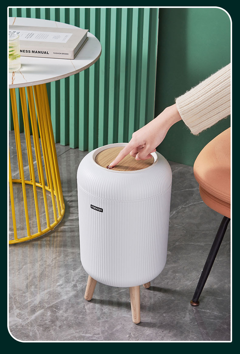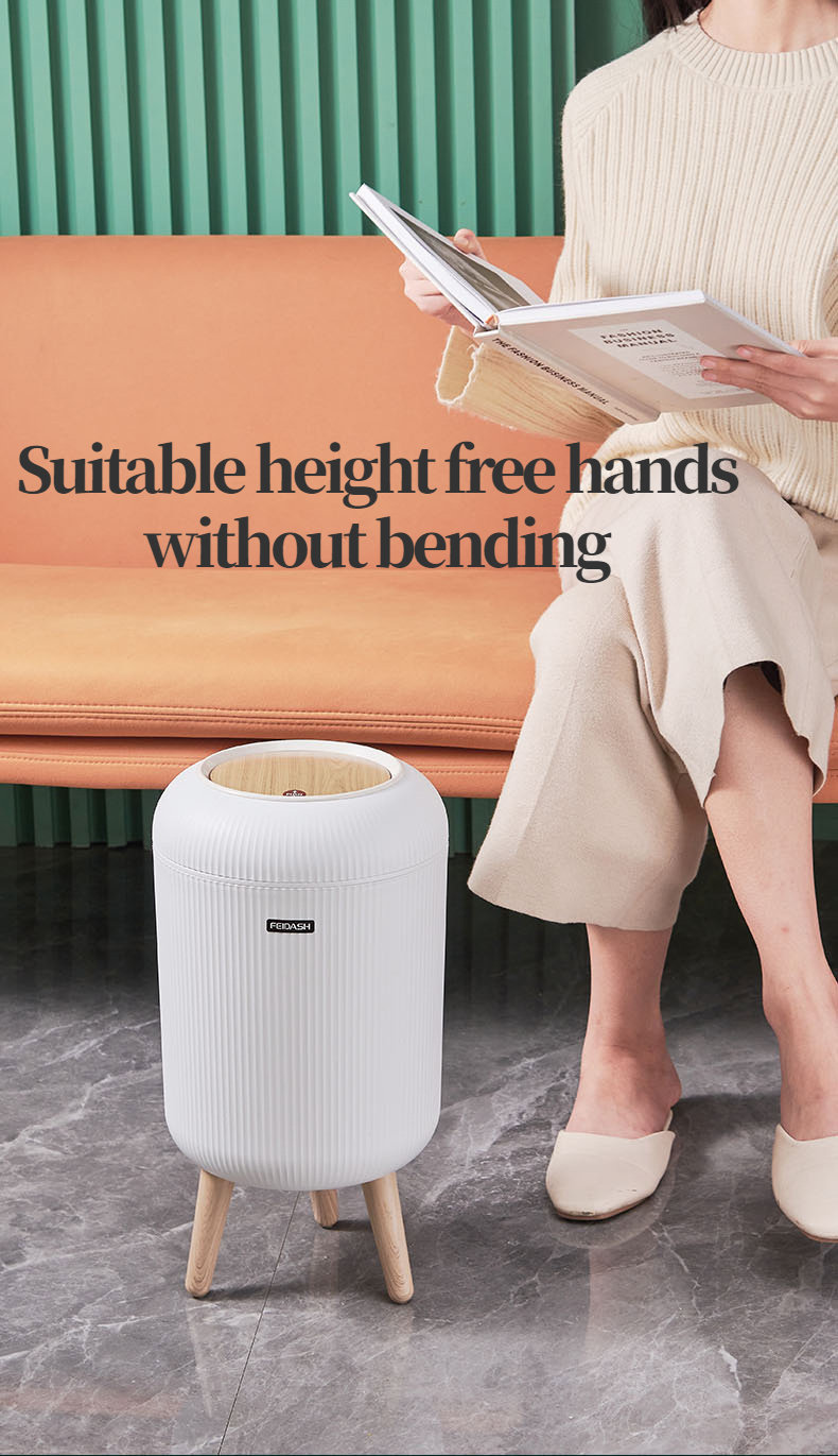 2.64gal High Foot Striped Trash Can, Household Living Room, Kitchen, Bathroom, B