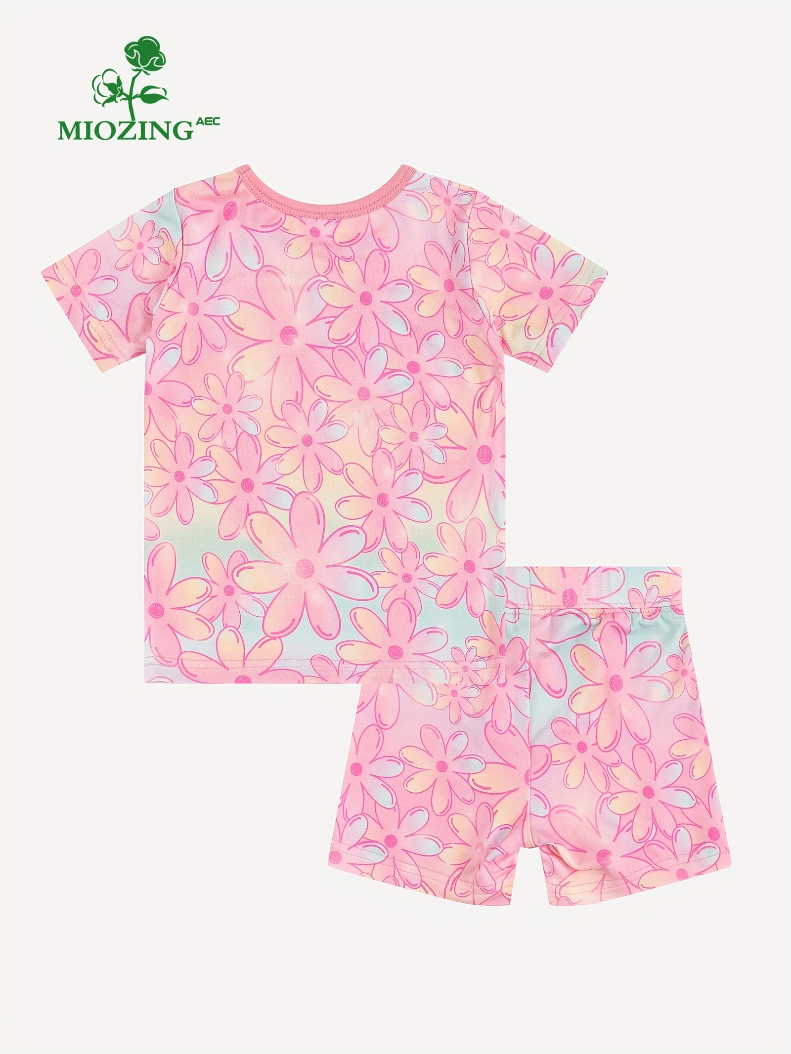 2-Piece Bamboo Fiber Toddler T-Shirt & Shorts Set - Soft, Breathable, Cartoon Gr
