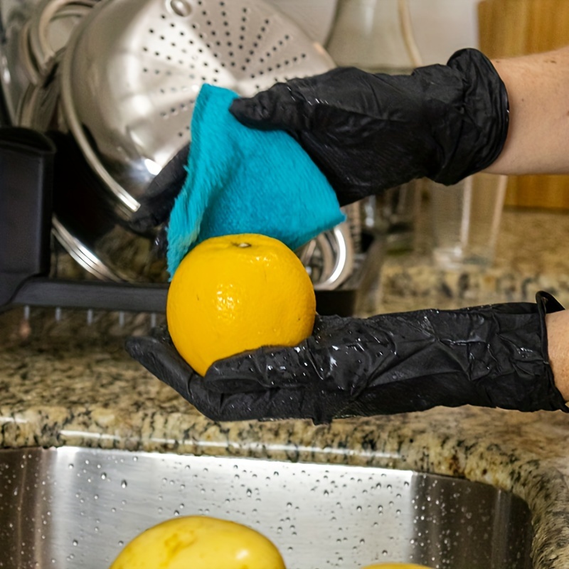 Our gloves are powder free food grade and can be used as black food gloves for cooking, food preparation, food processing, kitchen cleaning, dishwashing, and food service.