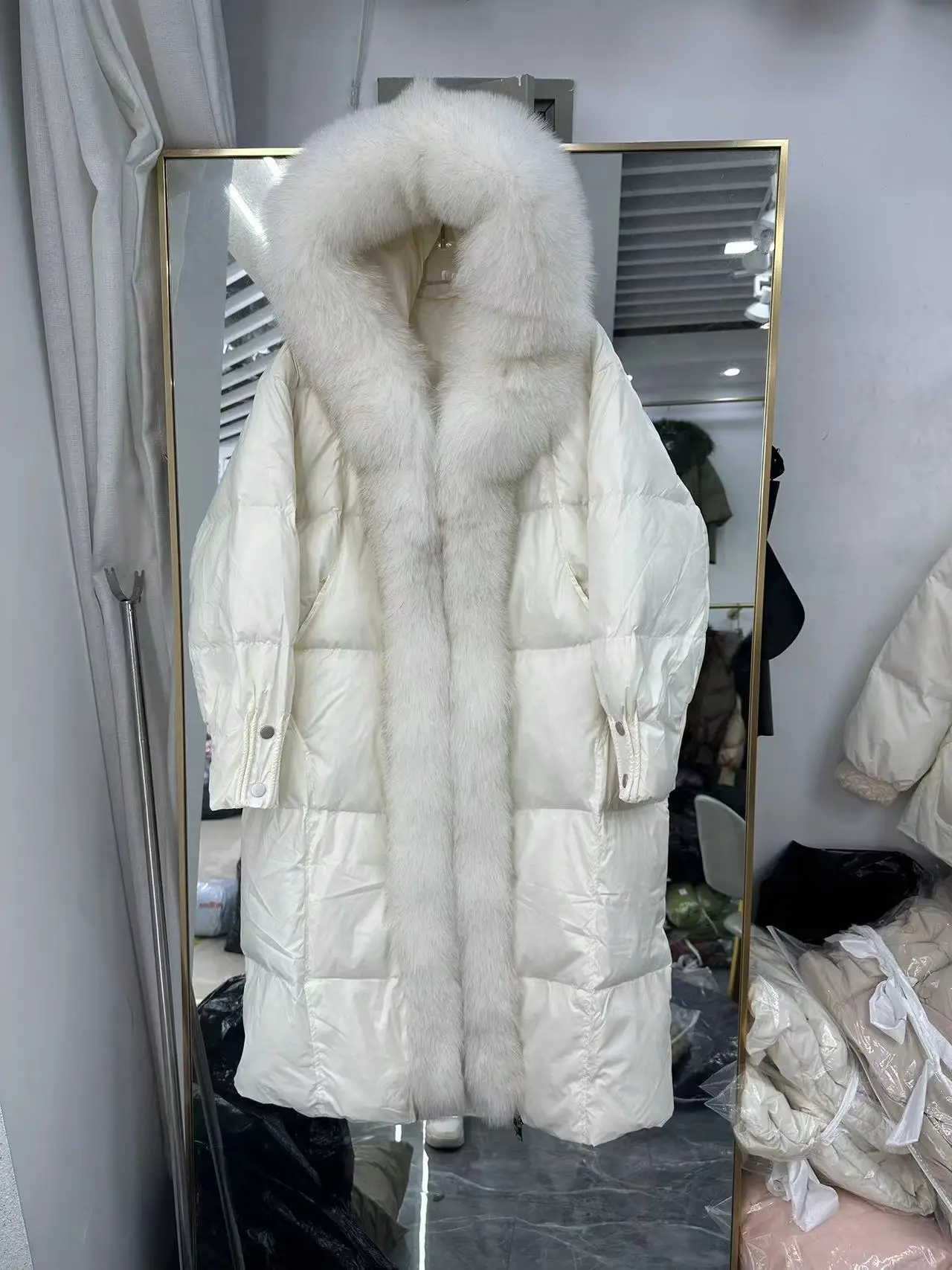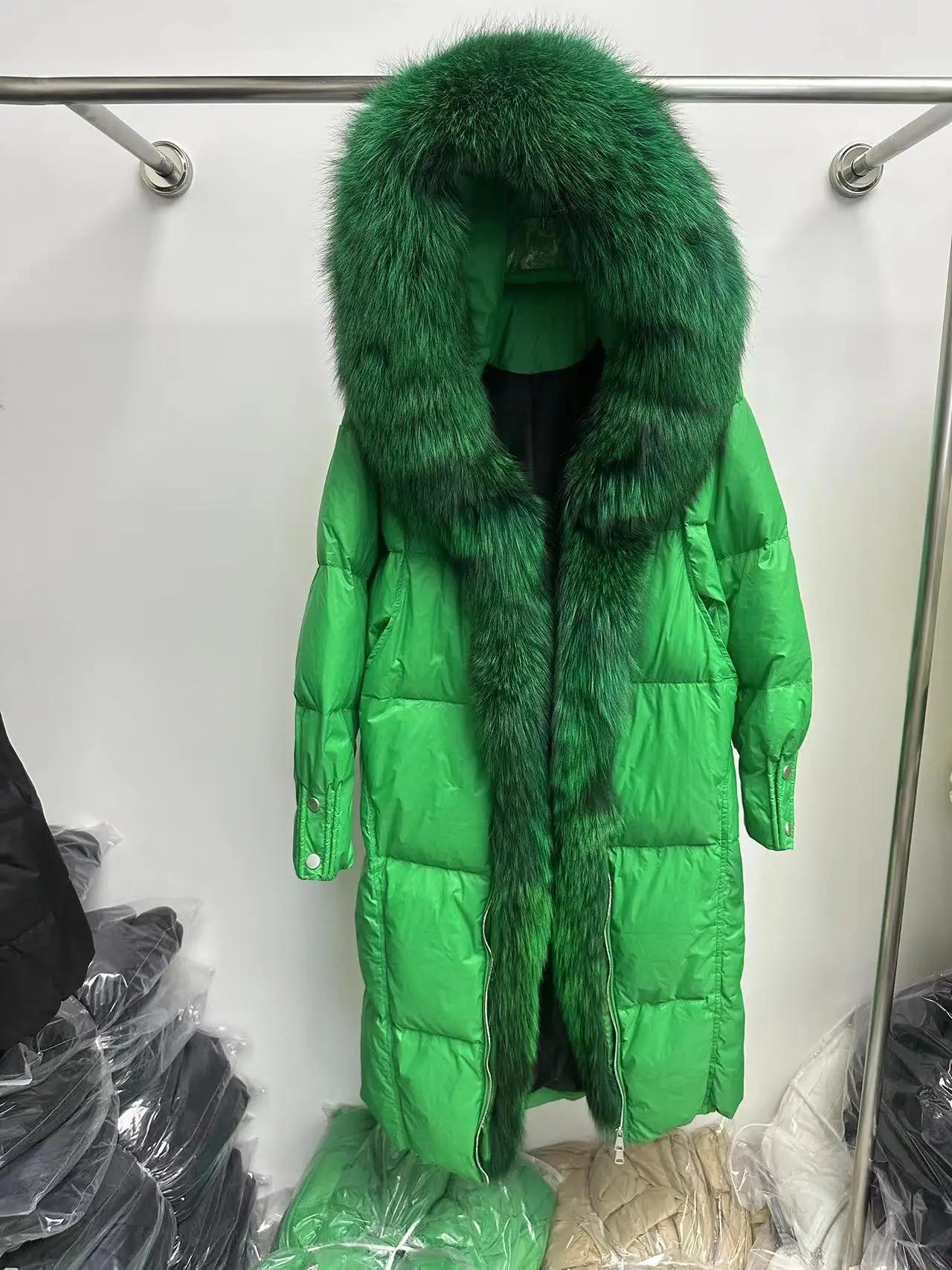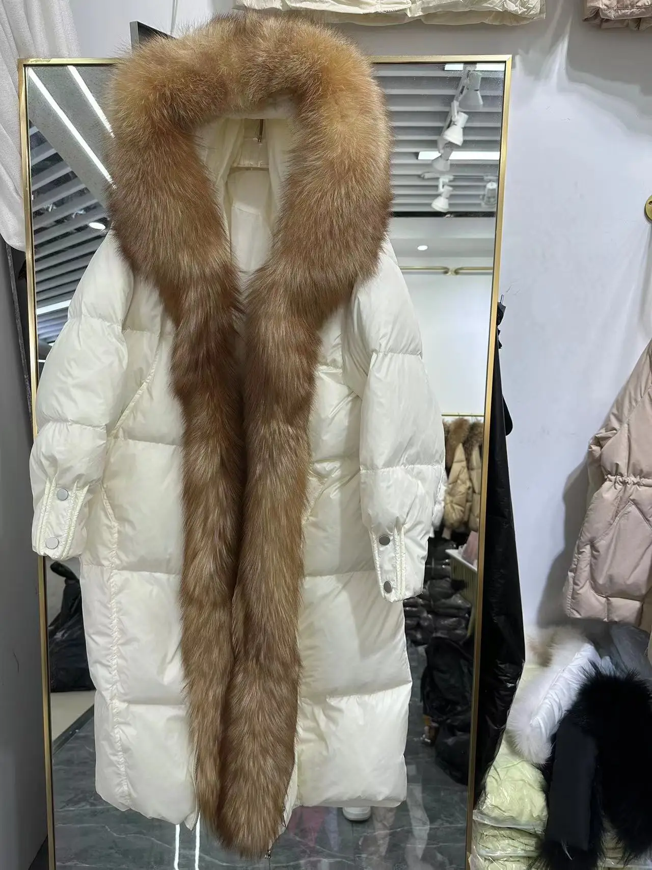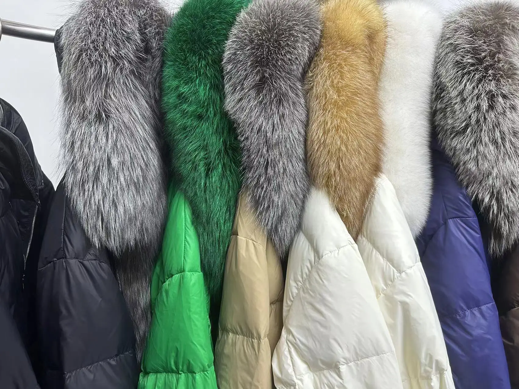 2024 new high-end fur fox fur collar, white goose down, silver fox down jacket,