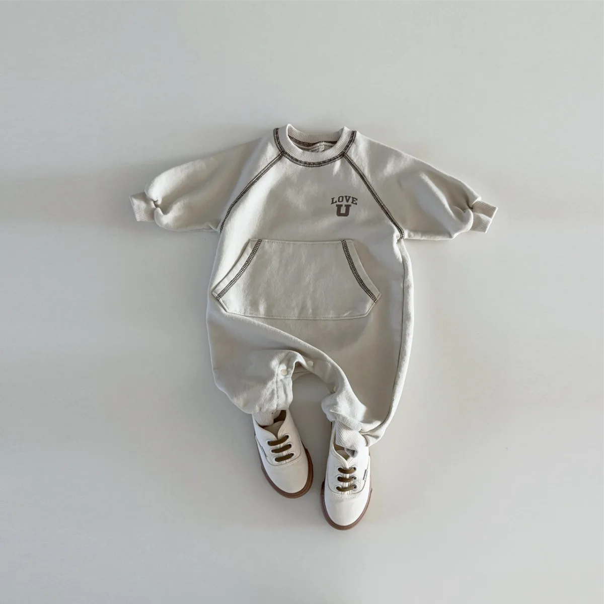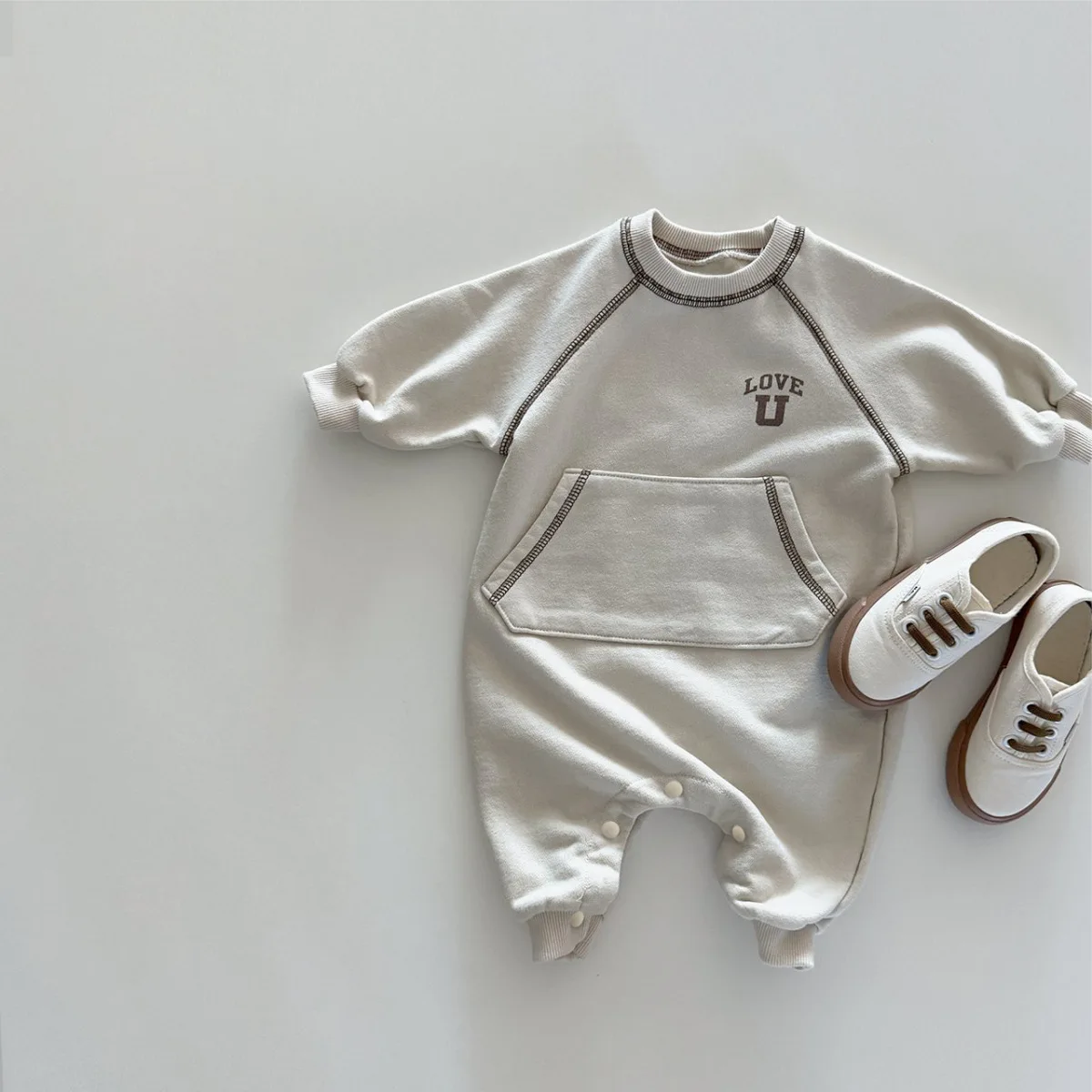 2025 Autumn New Baby Long Sleeve Romper Cotton Newborn Infant Letter Print Pocke