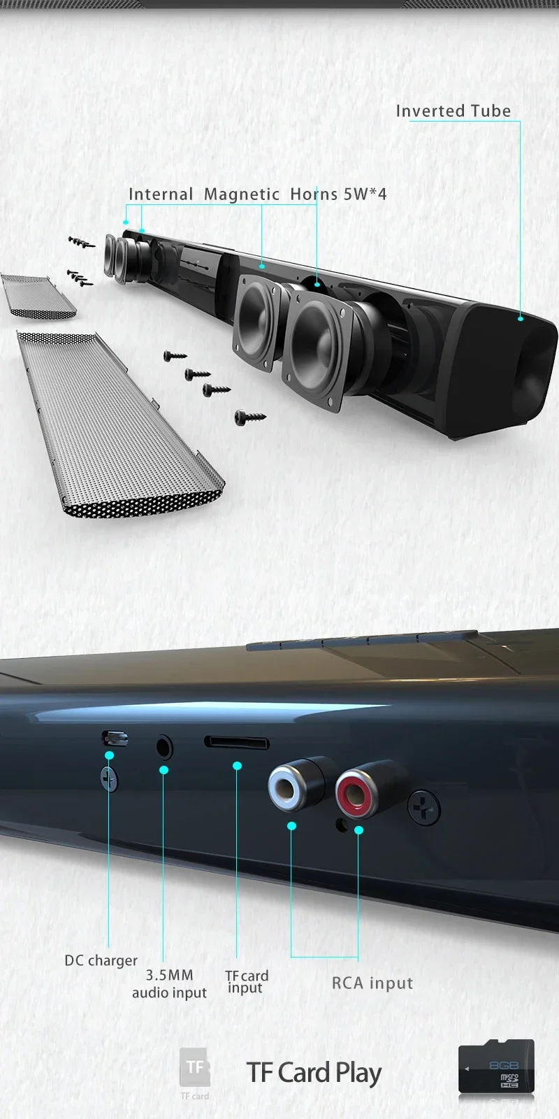 Bluetooth Surround Soundbar: with wireless Bluetooth 4.2 speaker, listening to your music with a tap of a finger, fit in smart TV, cellphone, tablet, laptop and so on