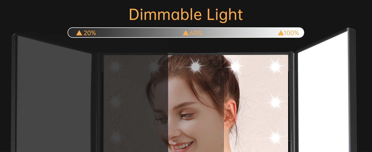 21 LED 2X/3X Magnification Trifold Vanity Makeup Mirror with Touch Dimming - 180