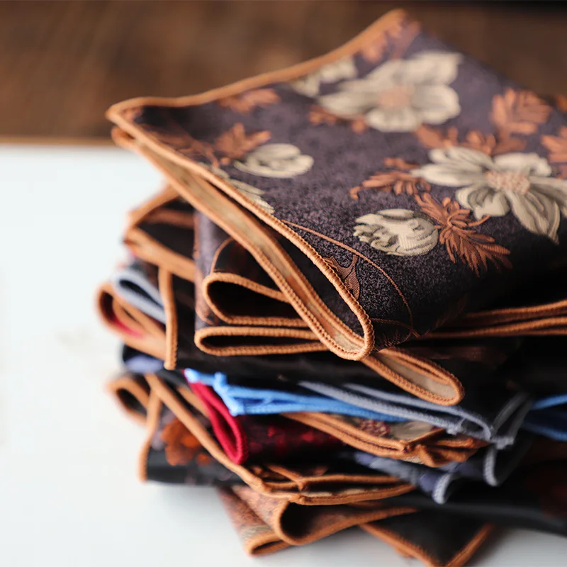 Brown Color Pocket Square Mens Flower Floral Handkerchief Wedding Party Suit Accessories Cravat Daily Wear Hanky