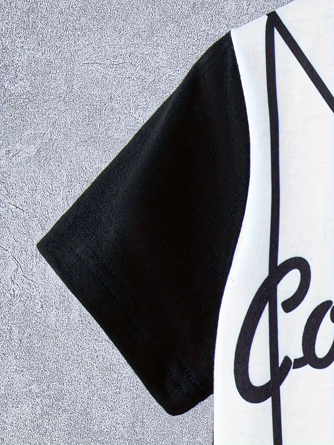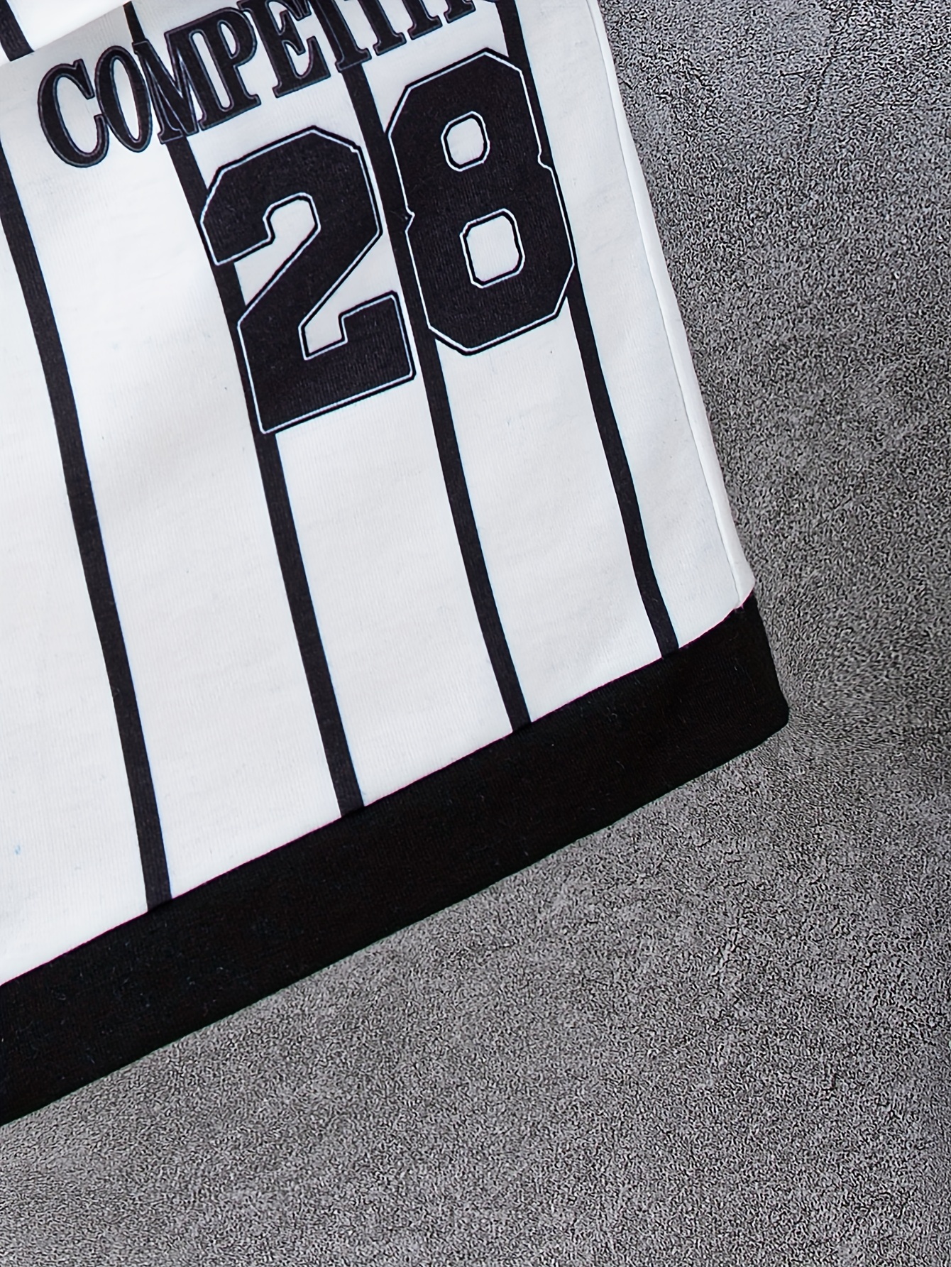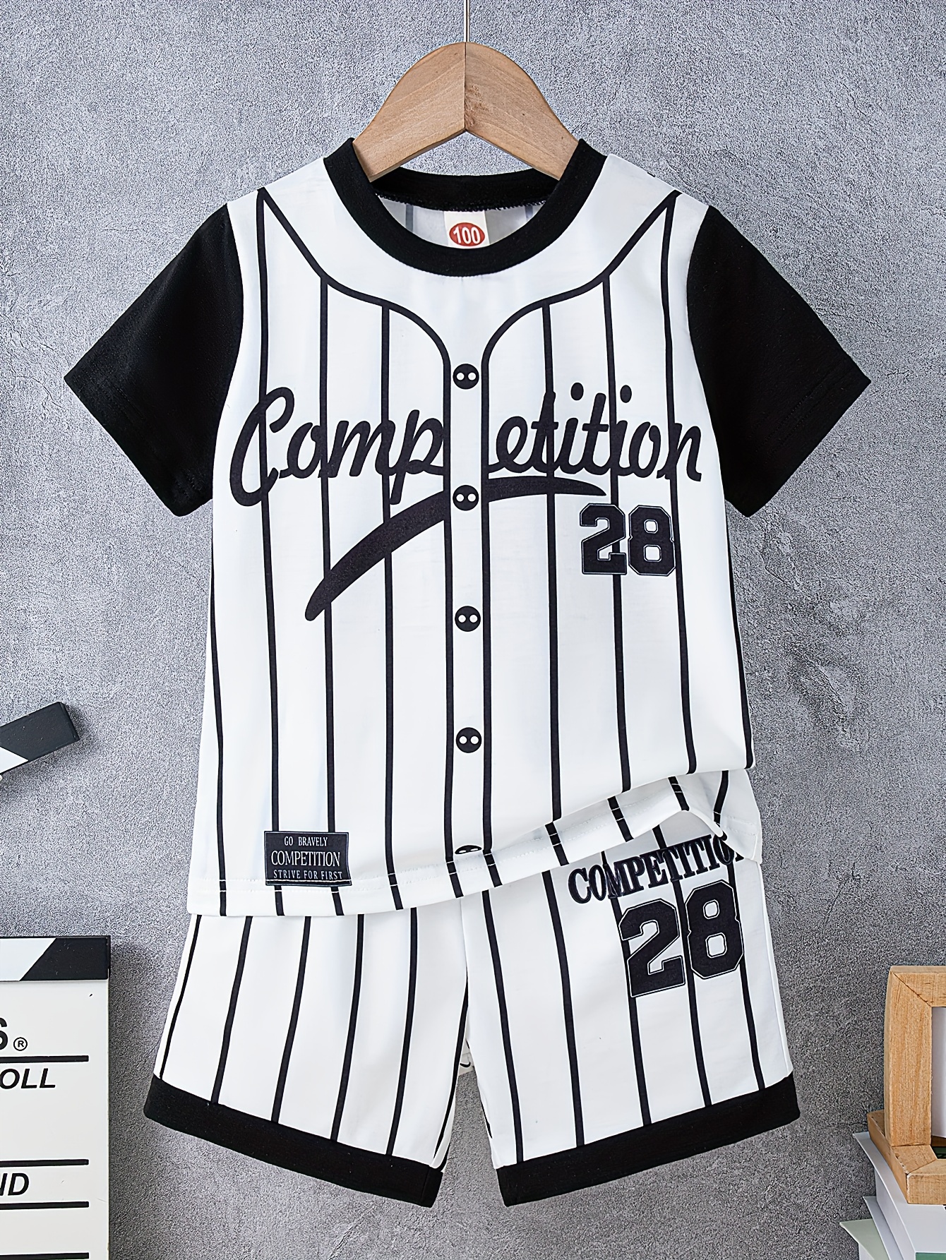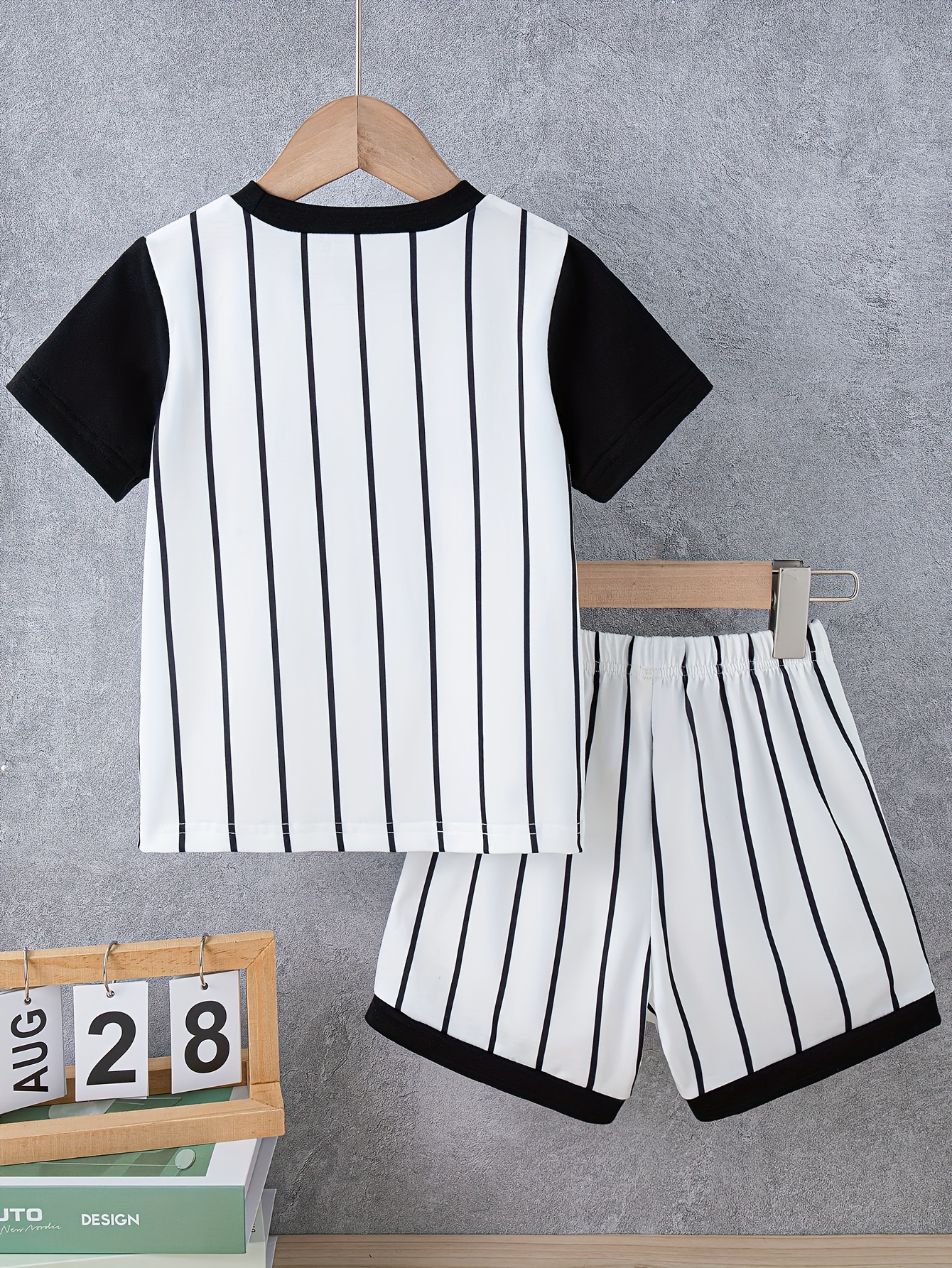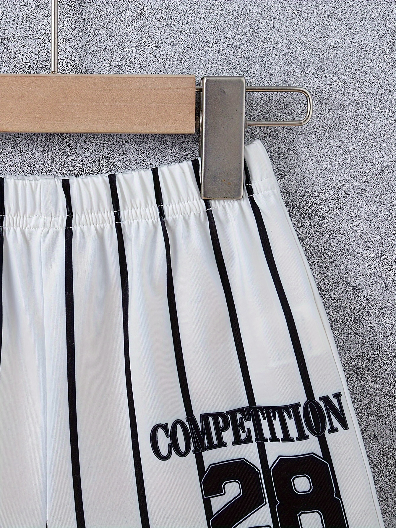 2pcs Boys Casual Letter Graphic Print Striped Short Sleeve T-shirt & Shorts Set,