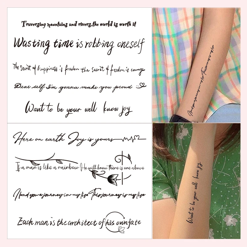 2Pcs Inspirational English Letter Tattoo Sticker Temporary Waterproof Body Art E