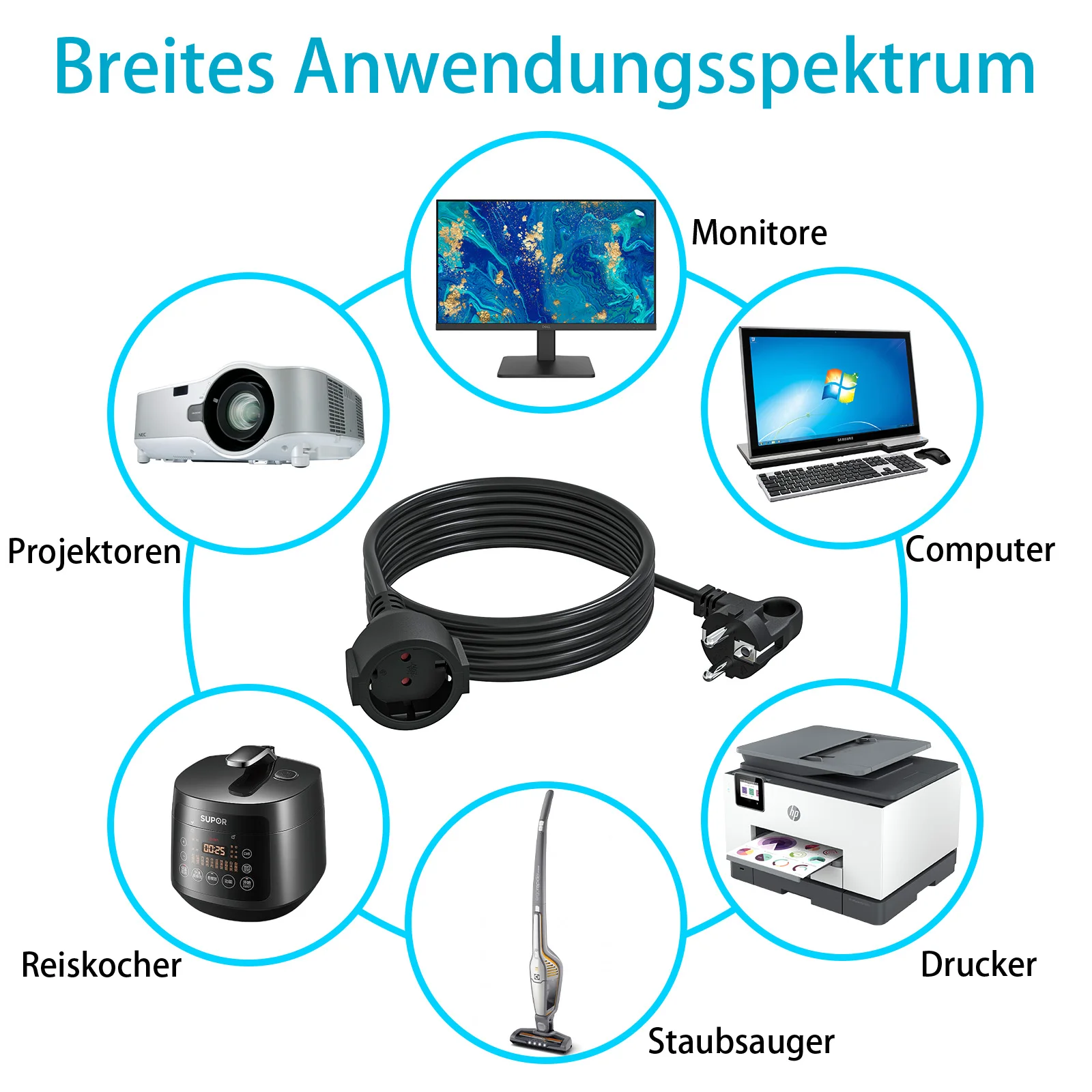 1.【Outdoor extension cord】3m long extension cable for use outdoors, in the garden, in wet rooms, indoors or in industry,Ideal for use outdoors or in the garden.