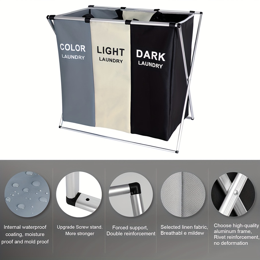 3 Section Multifunctional Basket with Aluminum Frame for College Dorms, Bedroom,