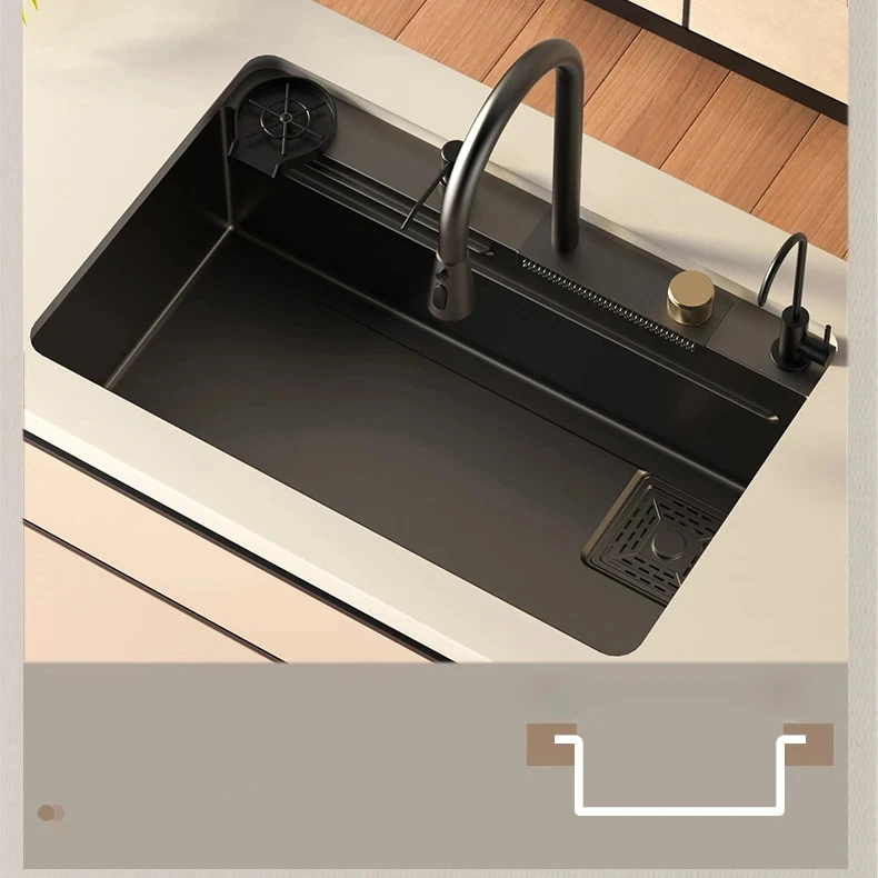 304 stainless steel waterfall style kitchen sink, single sink faucet set, soap c