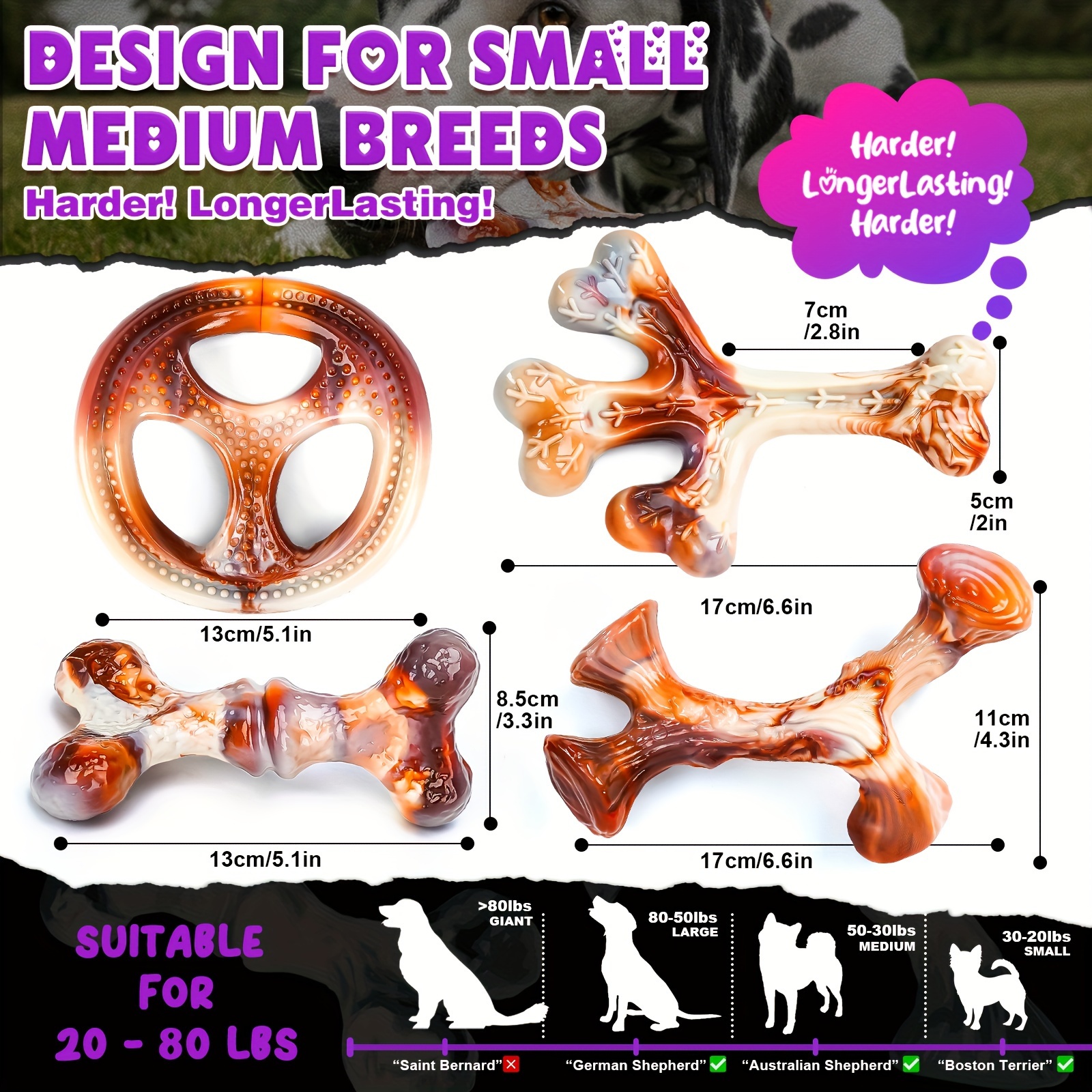 SPECIFICATIONSBreed Recommendation: All Breed SizesItem ID: YX82789Material: NylonPattern: Other4-Pack Durable Dog Chew Toys For Aggressive Chewers, Tough Nylon Bone Set For AlSKU: 67675394$31.06PriceFlavors*Bacon FlavorAdd to CartBuy Now
