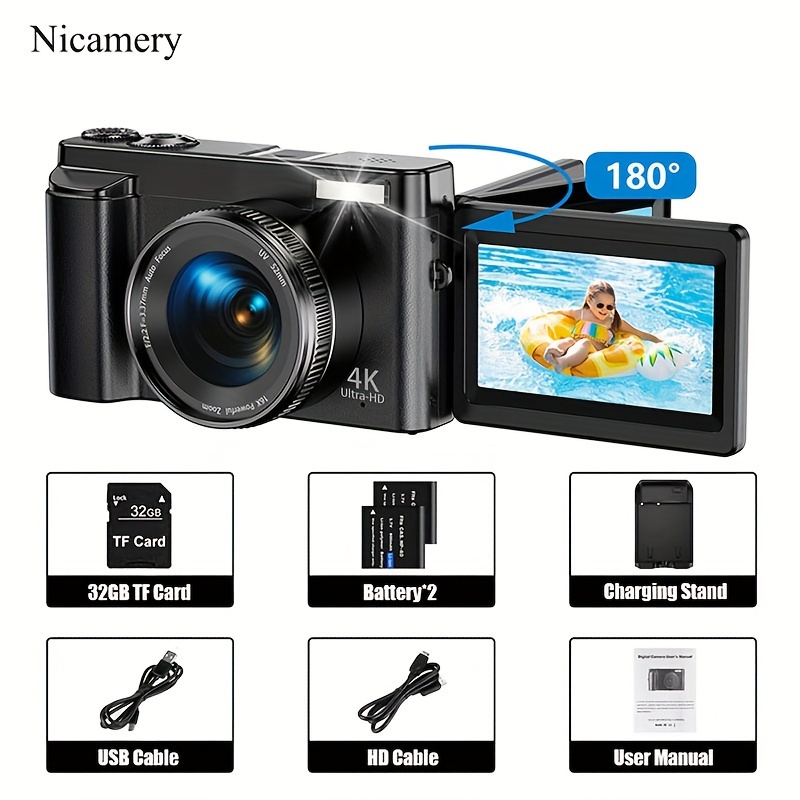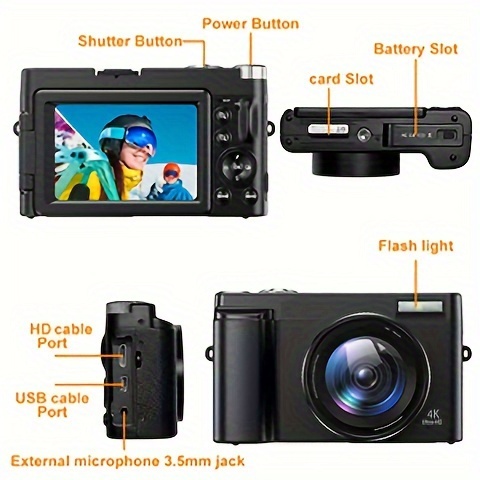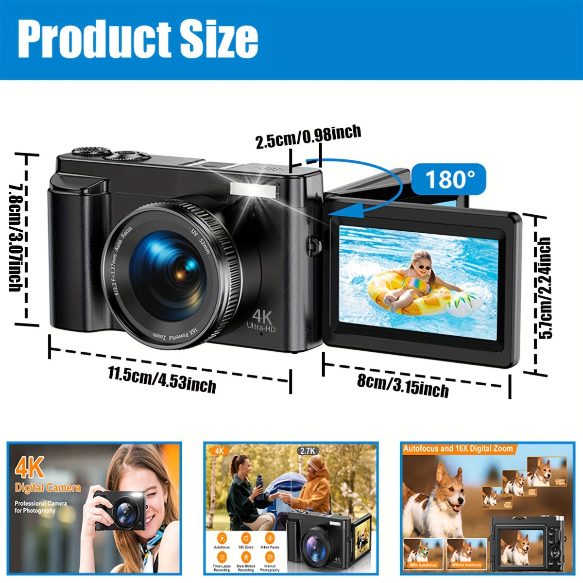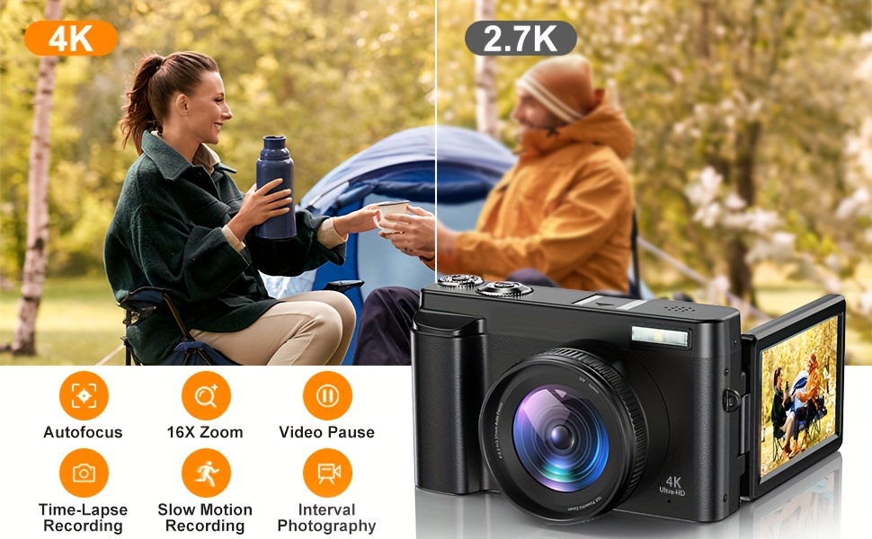 48MP 4K Microsingle Camera, 16x Efficient Digital Zoom Camcorder Video Recorder,