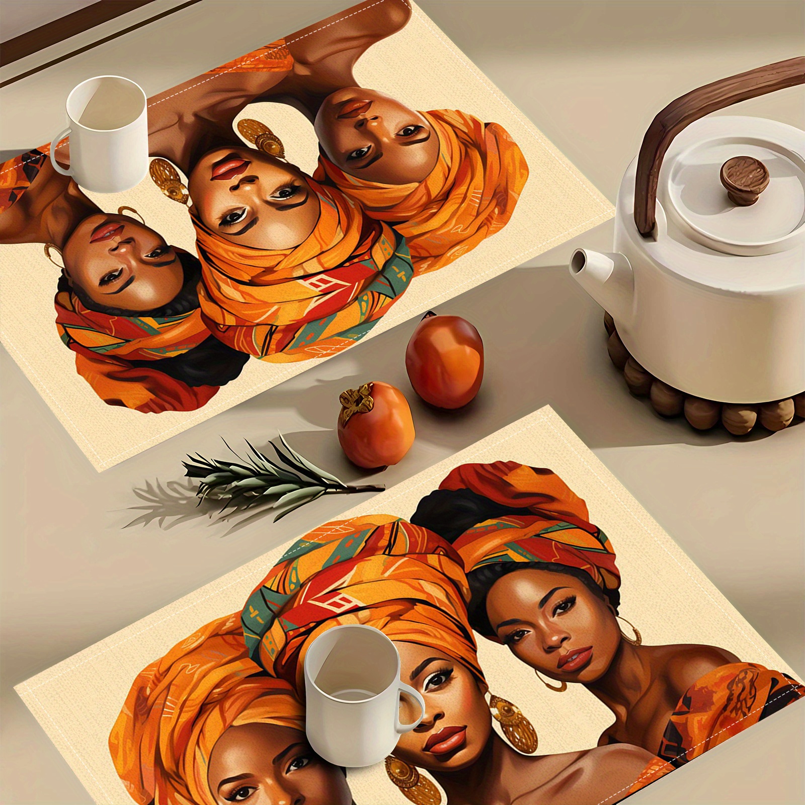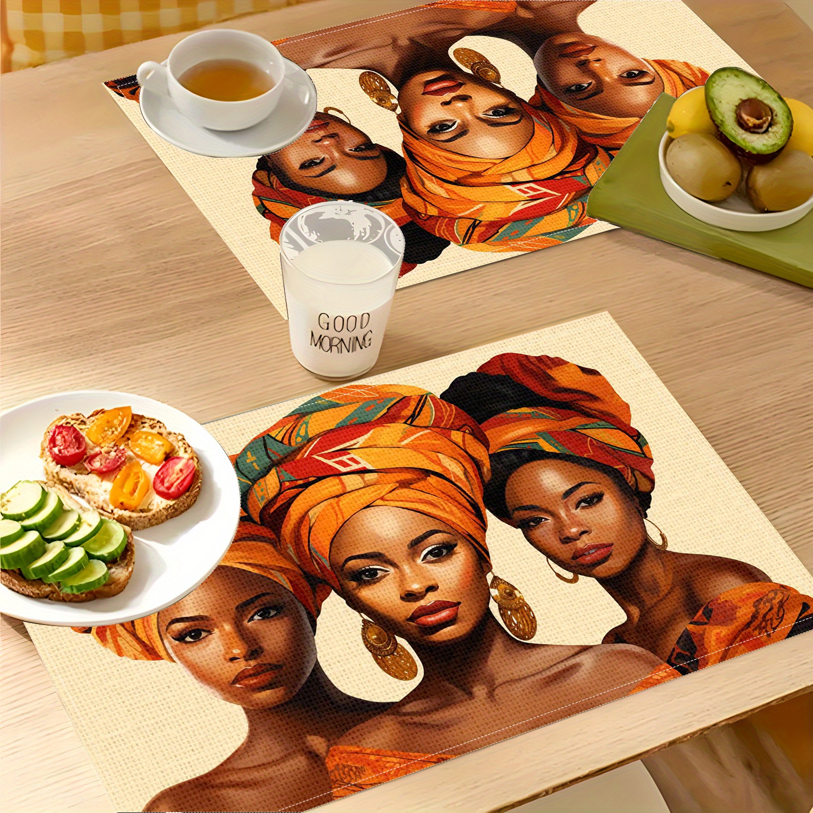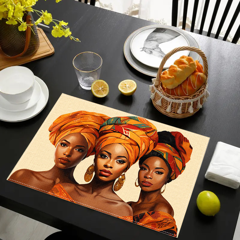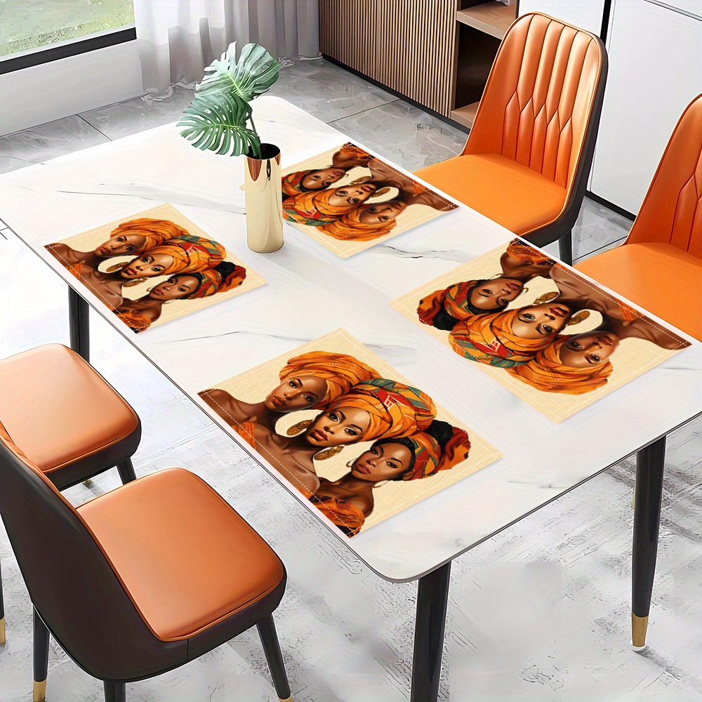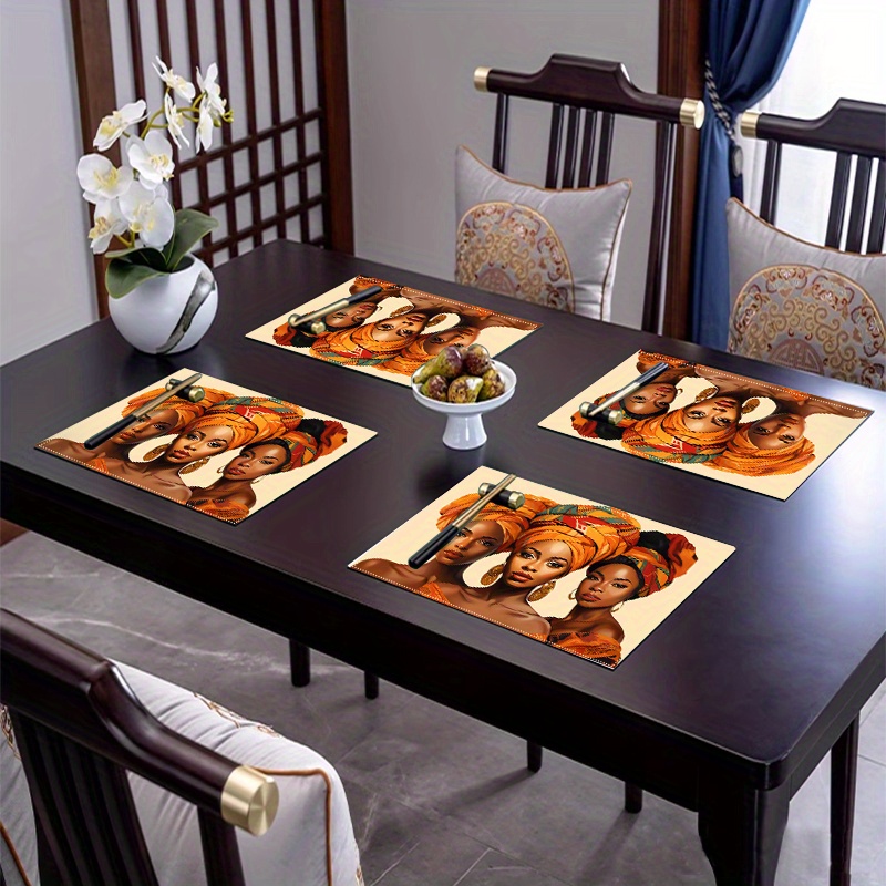 4pcs Set Chic Black Beauty Print Linen Placemats - Non-Slip, Heat-Resistant, Per