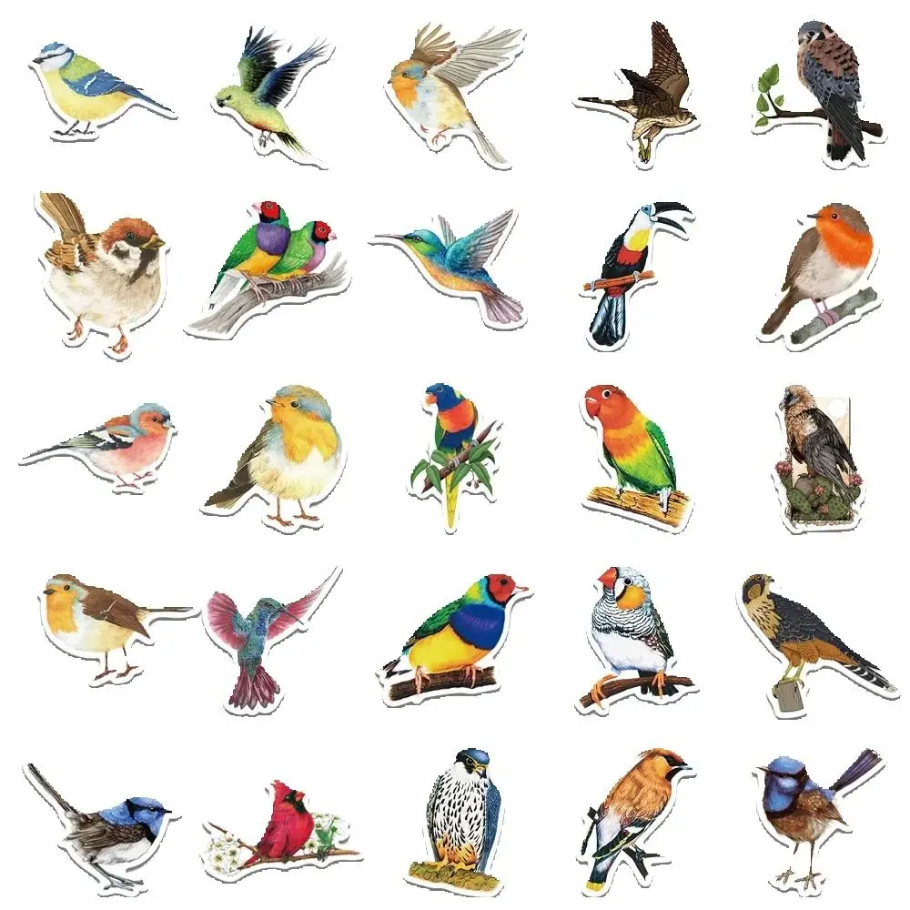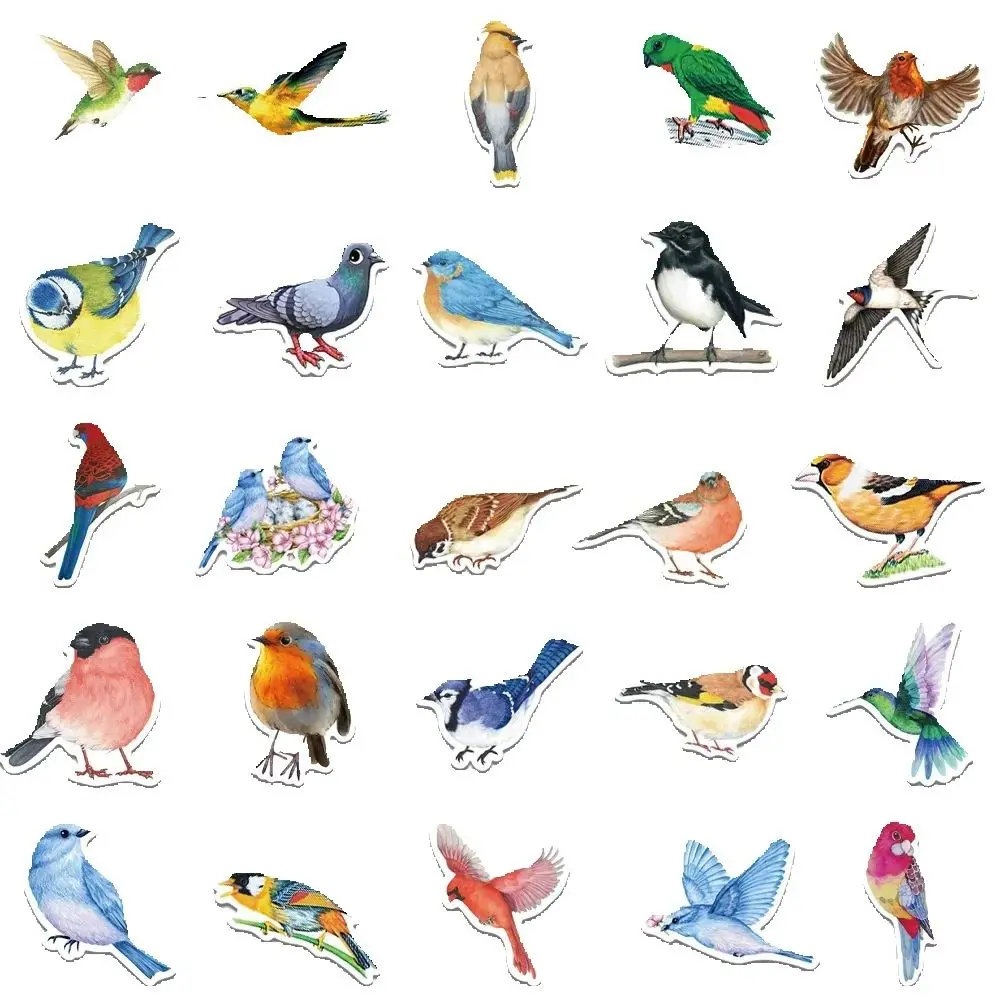50PCS Watercolor Bird Doodle Waterproof Sticker Cartoon Cute Animals DIY Suitcas