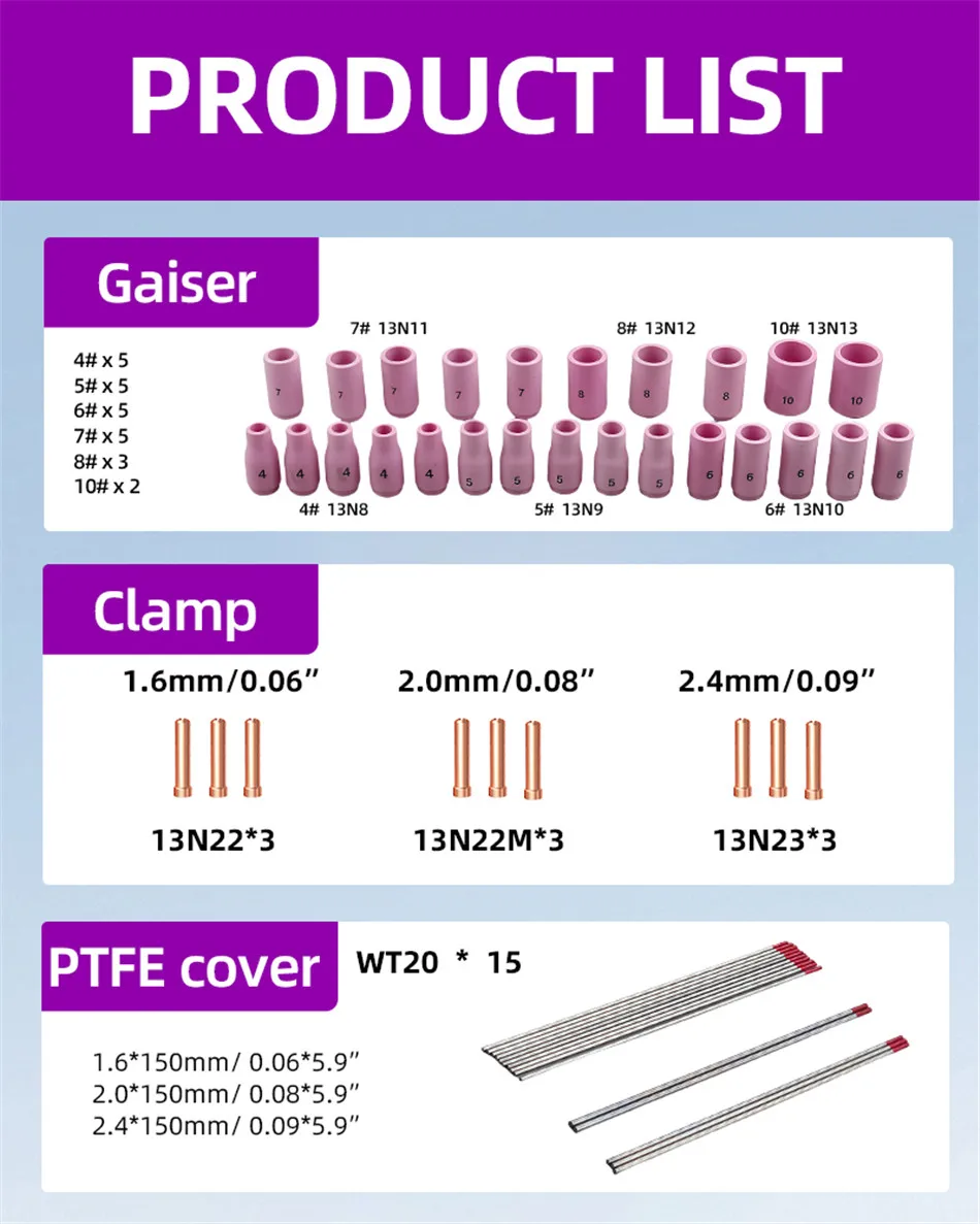 SPECIFICATIONSBrand Name: GUUELDChoice: yesHigh-concerned chemical: NoneOrigin: Mainland China60 PCS TIG Welding Torch Kit 040"~1/8" Gas Lens Setup WP-9/20/25SKU: 14:771#60PCS$50.92PriceColor*60PCSAdd to CartBuy Now