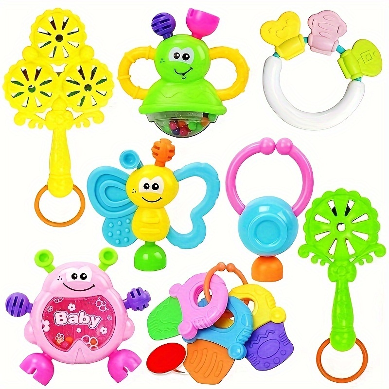 SPECIFICATIONSApplicable Age Group: 0-3 Years Old (inclusive)Item ID: AF50102Major Material: ABS7/9pcs Adorable Multi-Color Rattles Set - Baby Developmental Toys - Perfect Souv$12.64PriceQuantity*SelectAdd to CartBuy Now