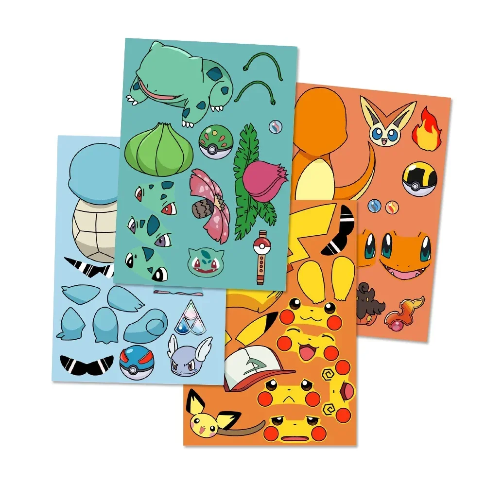 8/16 Sheets Pikachu Puzzle Stickers Pokemon Make-a-Face Decals Funny Assemble Jigsaw DIY Children Cartoon Sticker Kid Toys