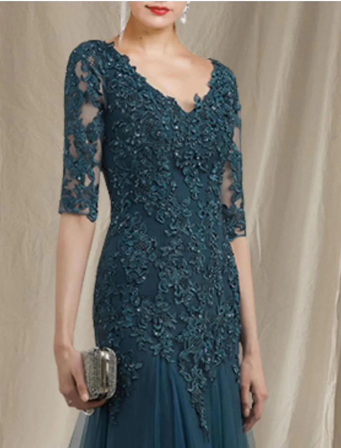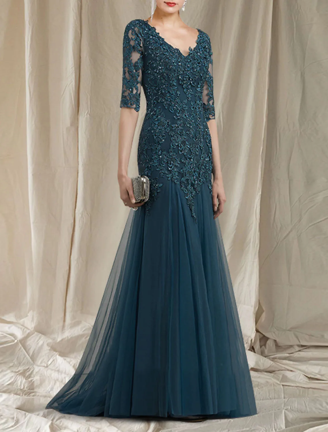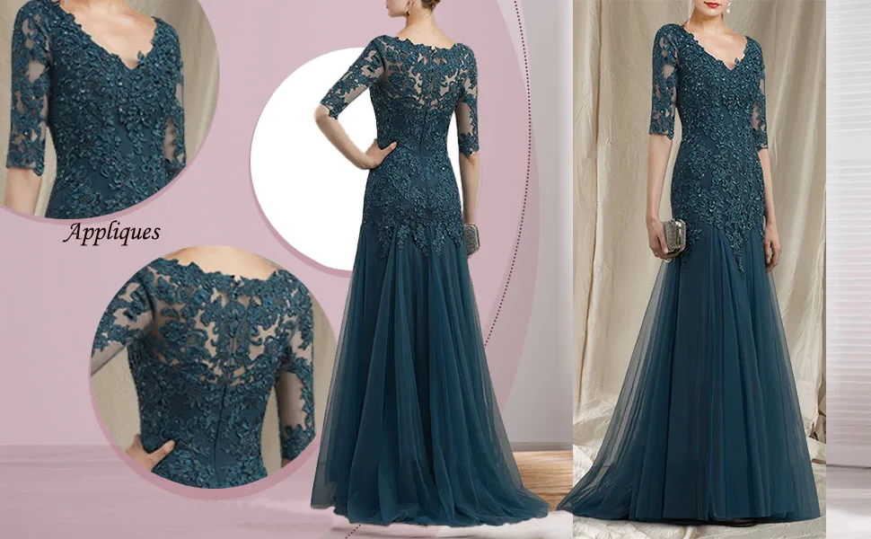 This TWedding Guest Evening Gown Elegant Mother of the Bride Dress A-Line V-Neck Lace Tulle Appliques Dress is perfect for Formal,Wedding Party, Formal Evening,Semi Formal, Wedding Guest,Prom,Birthday Party,spring/summer/fall/winter Party Wear Women's dresses