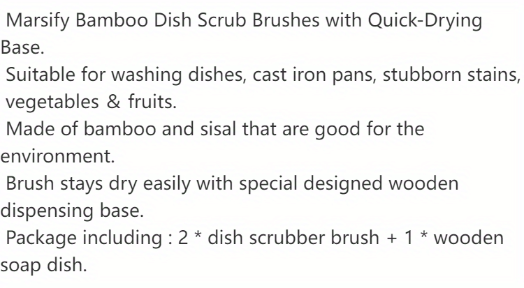 Bamboo Dish Scrub Brush, Kitchen Dish Scrubber Brush Set For Cleaning Dishes, Si