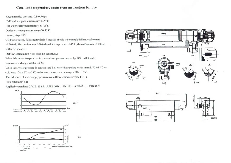 When inlet water pressure is constant and hot water temperature varies from 55℃ to 85℃ or cold water from 8℃ to 29℃, outlet water temperature change will be ±2℃;Package Includingthermostatic mixing valve (without shower hose or shower set)