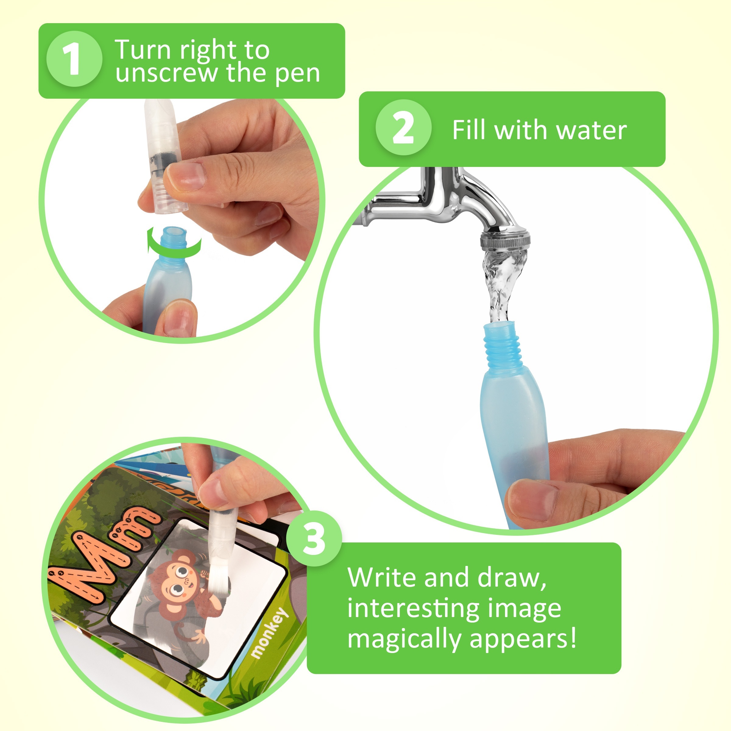 Coogam Alphabet Watercoloring Cards, Water Painting Recognition Cards, Paint 26